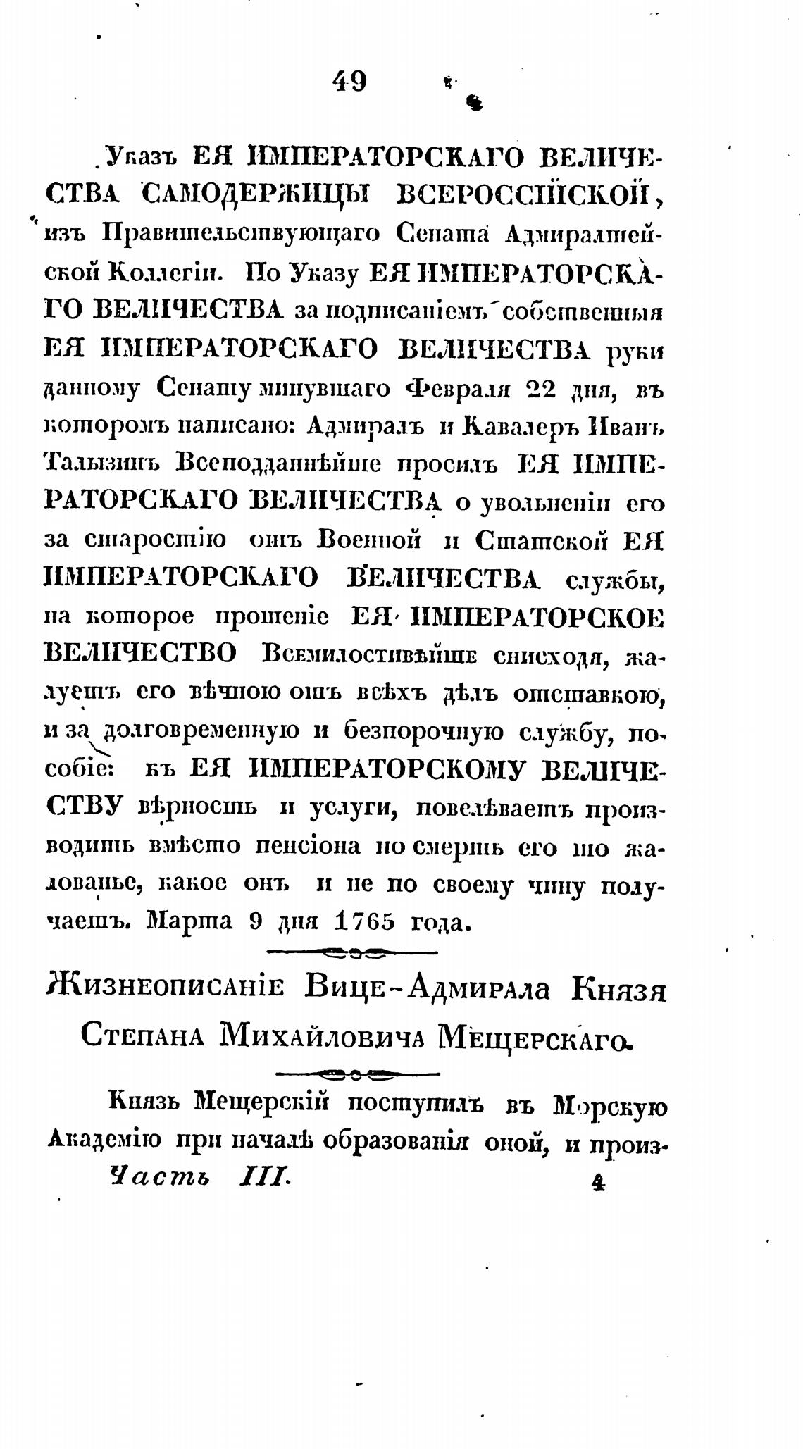Талызинъ ВсеподданнеЬйше просилъ ЕЯ ИМПЕ-