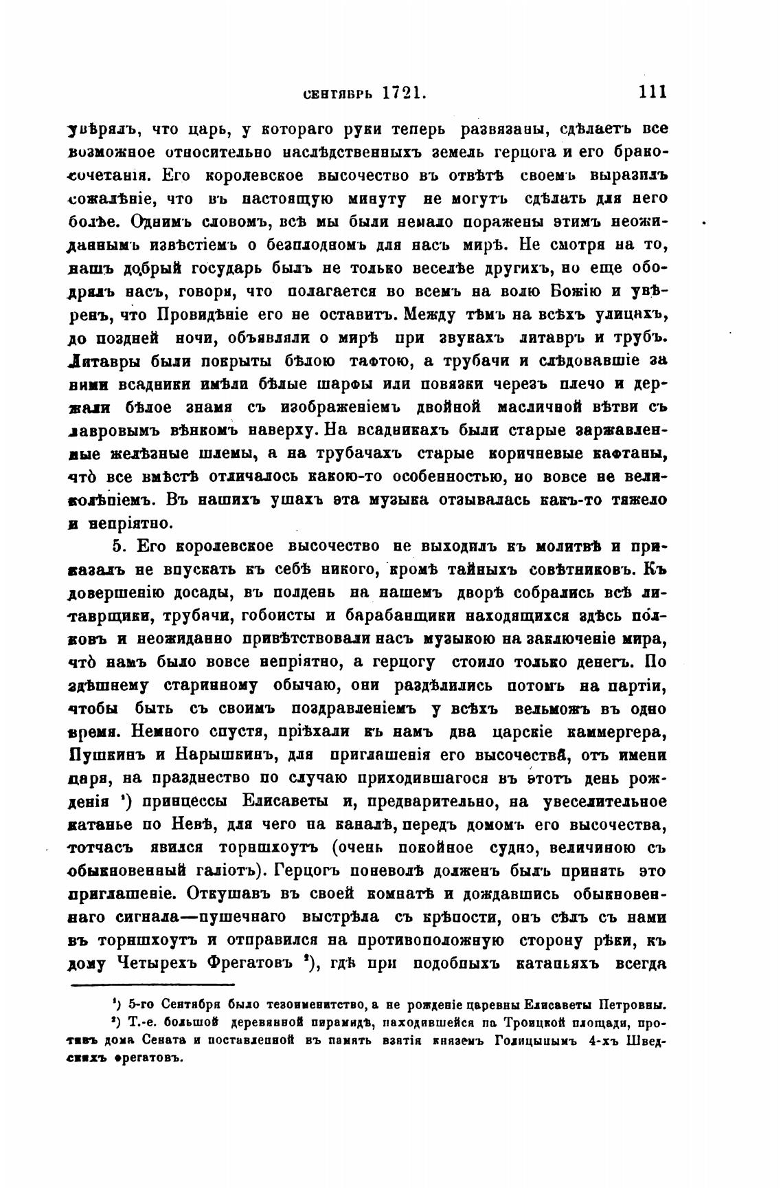 1) 5-го Сентября было тезоименитство, в не рождеаје царевны Елисаветы Петровны.