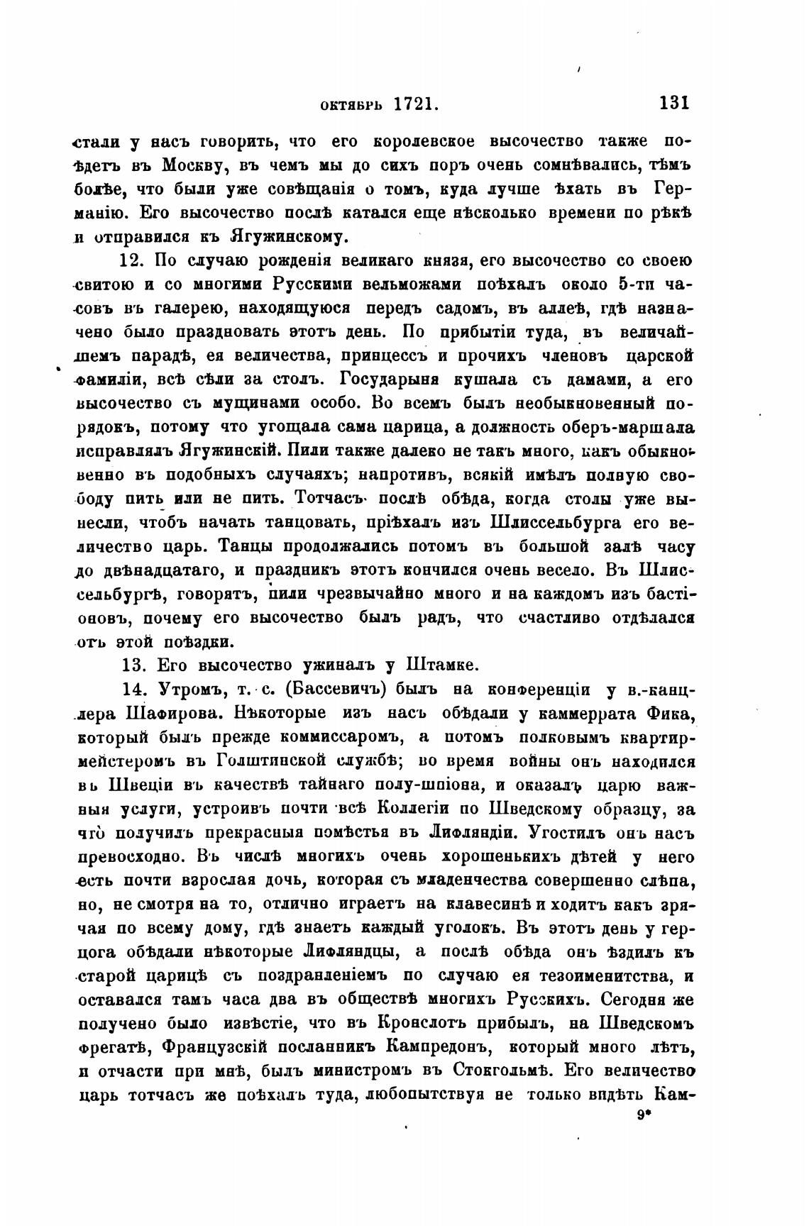 14. Утромъ, т. с. (Бассевичъ) быдъ на у в.-канц-