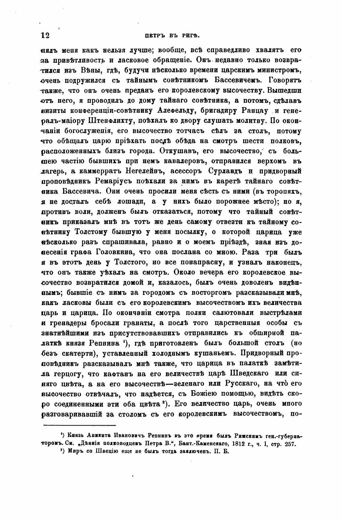 очень подружился съ тайнымъ сов•Ьтникомъ Бассевичеиъ. Говорять