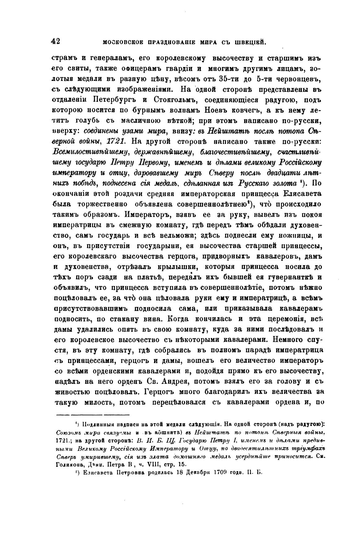 Елисавета Петровва родилась 18 Декпбрн 1709 года. П. Б.