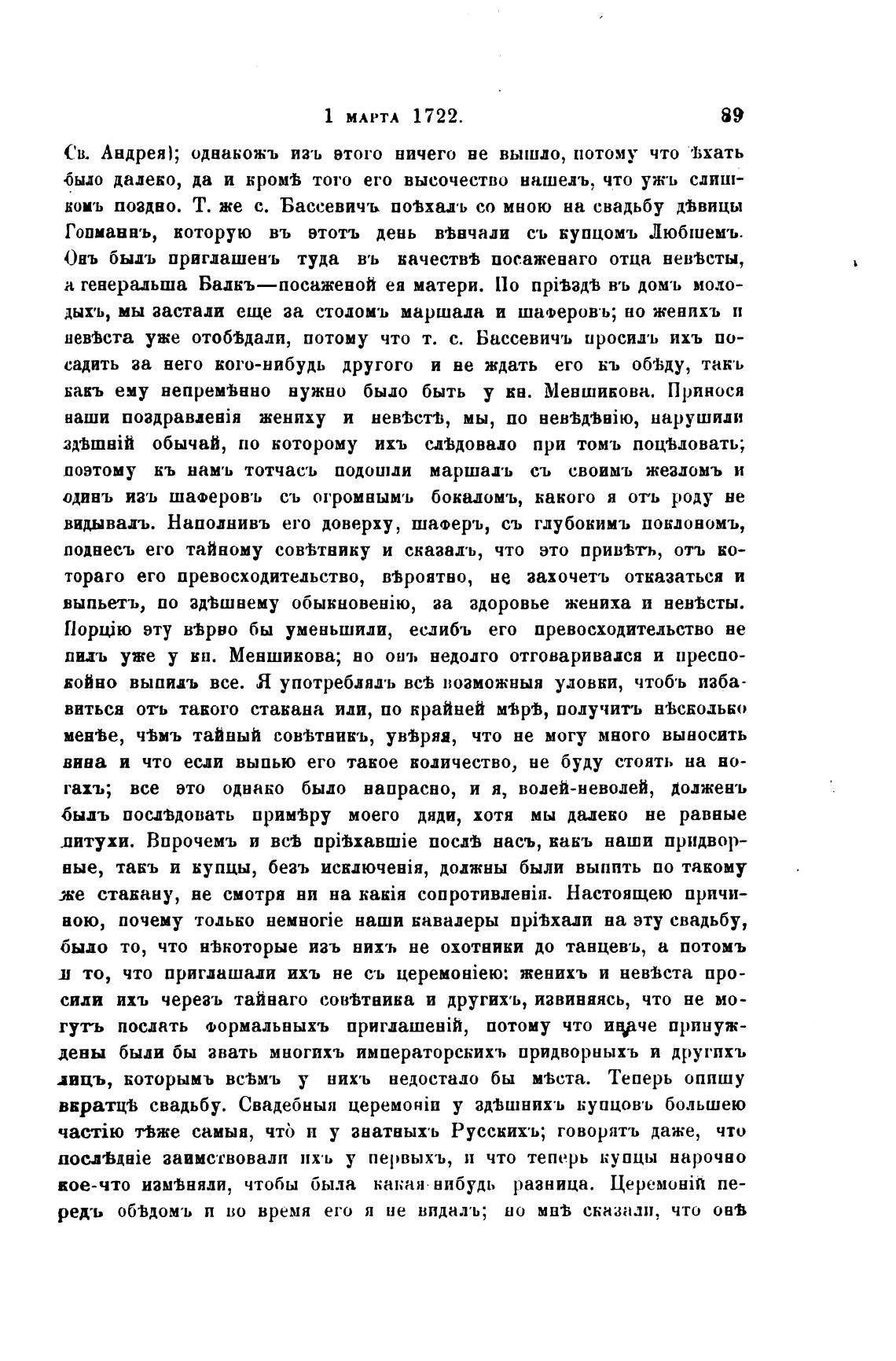 невћста уже отобјдали, потому что т. с. Бассевичъ иросидъ ихъ по-