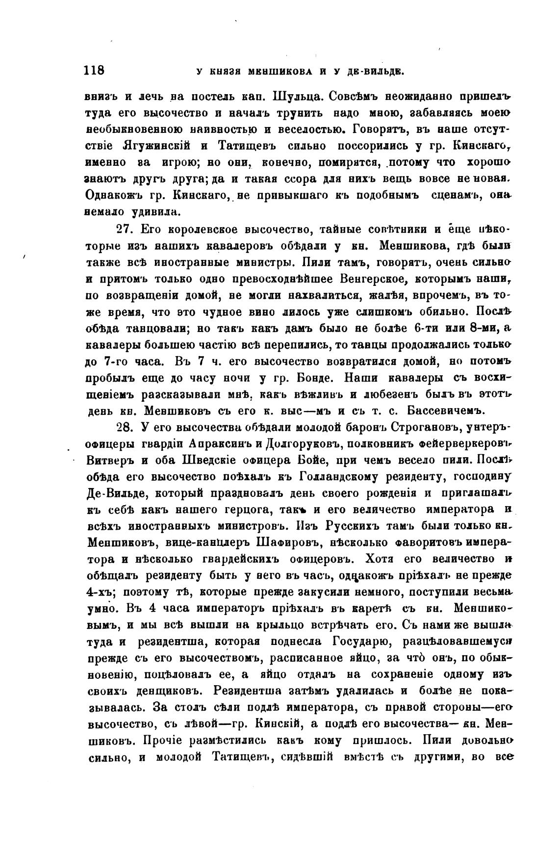 28. У его высочества об'Ьдали молодой барон•ь Строгавовъ, унтеръ-