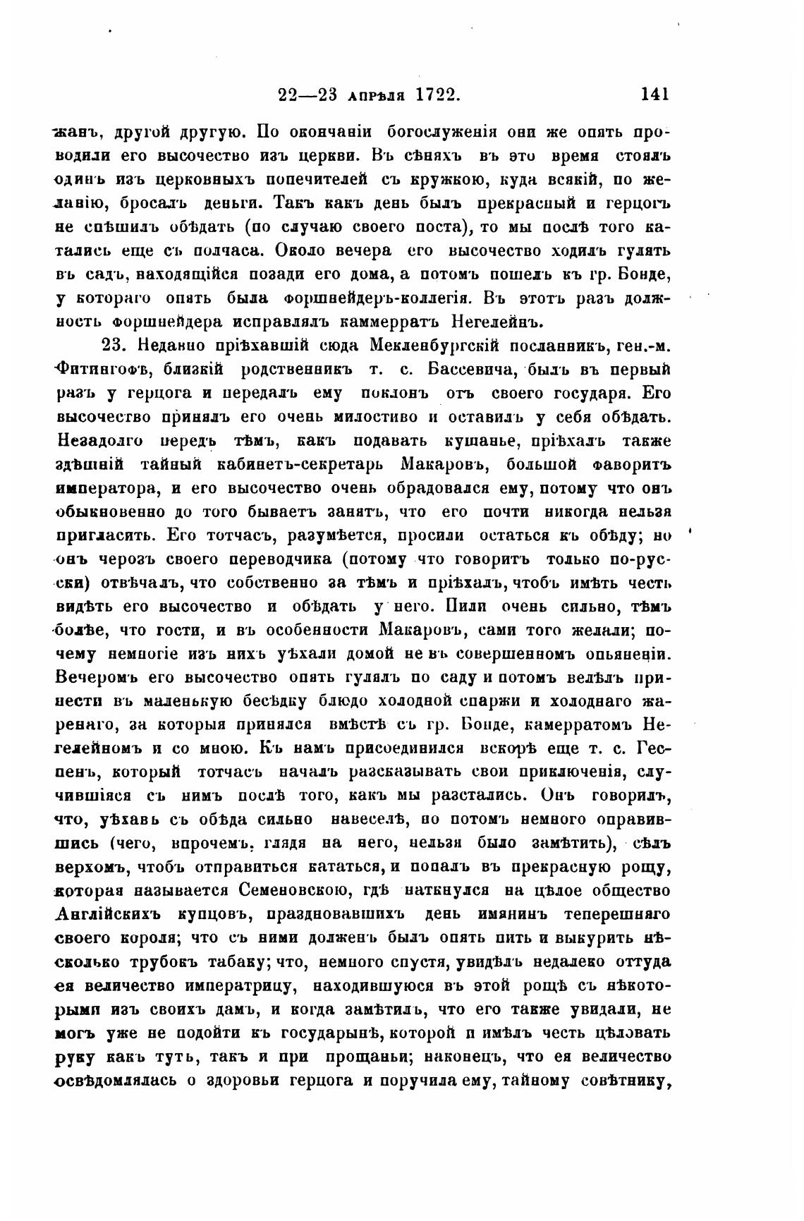 Фитинготв, близкВ\ родственникъ т. с. Бассевича, быть въ первый