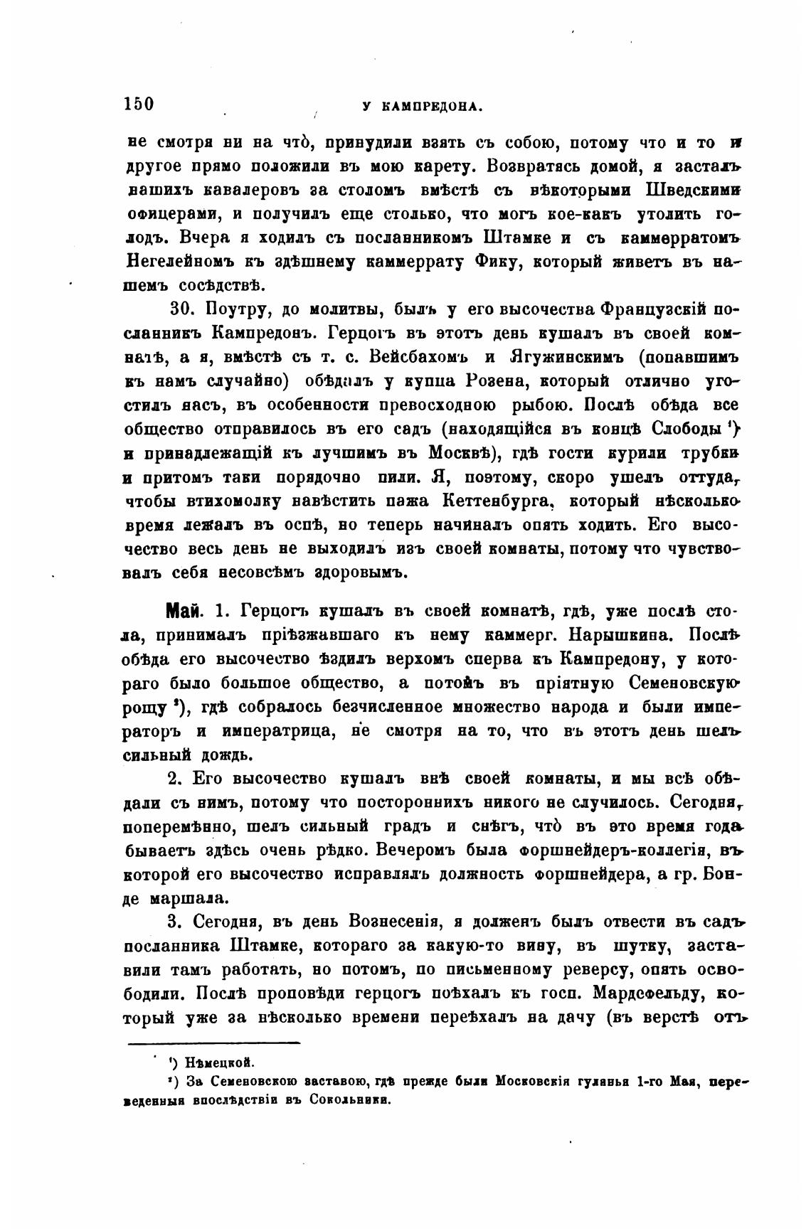 Май. 1. Герцогь кушадъ въ своей комнатђ, го, уже послВ сто-