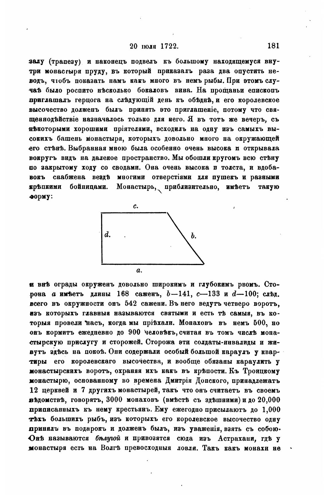 рона а имбеть длины 168 сажень, b—141, с—1ЗЗ и d—lOO; СЛ'Ьд.