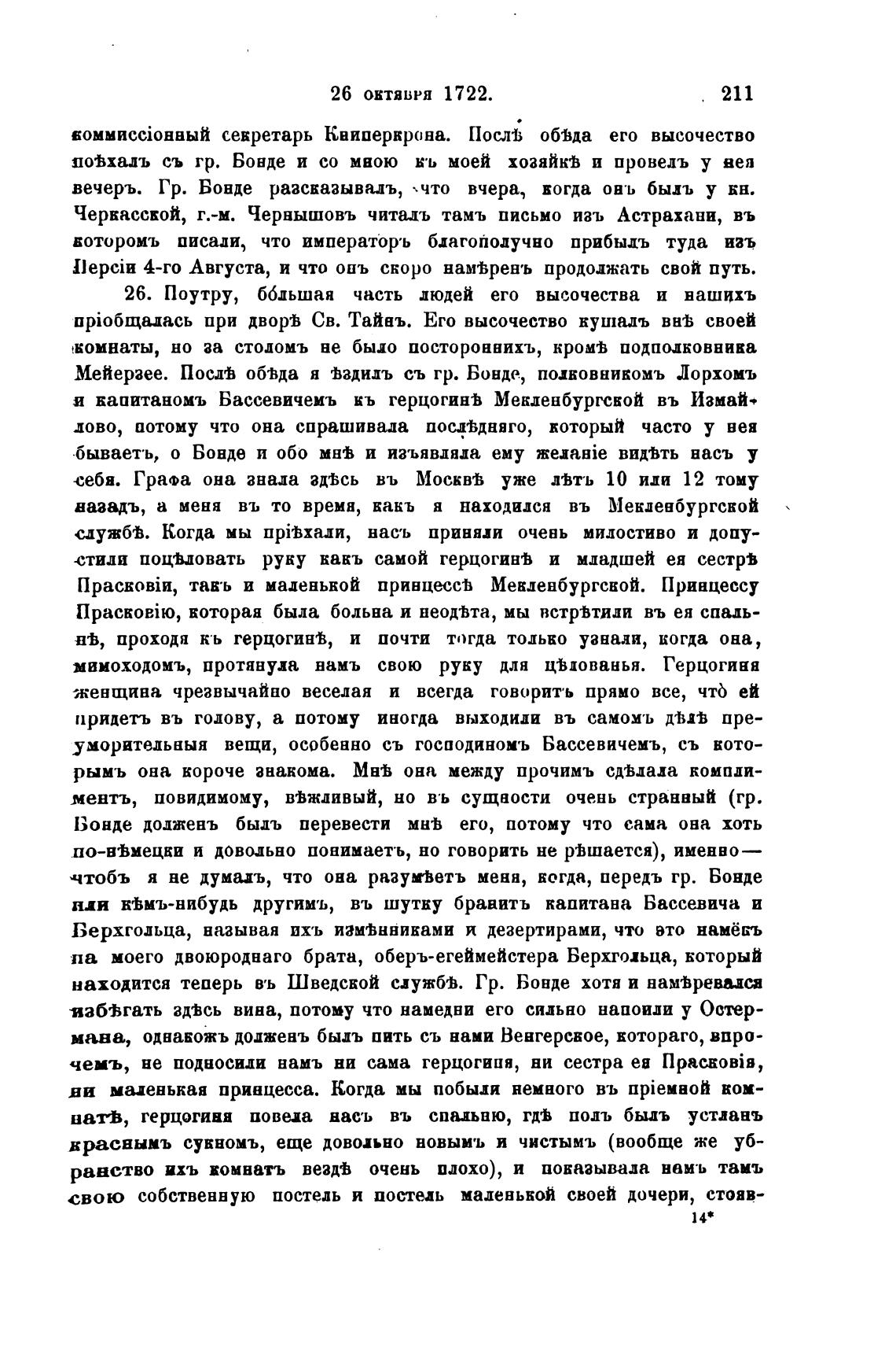 шоВхалъ съ гр. Бонде и со мною кь моей хозяйкј и провелъ у вет