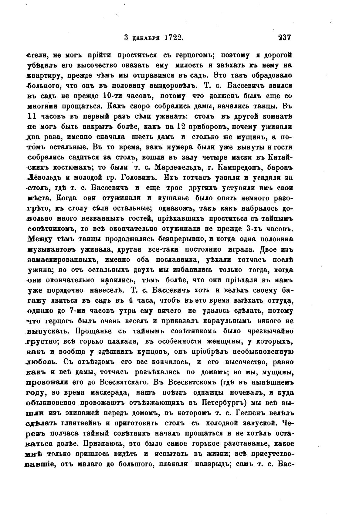 уже порядочно навеседв. Т. с. Бассевичъ хоть и ведЈдъ своему ба-