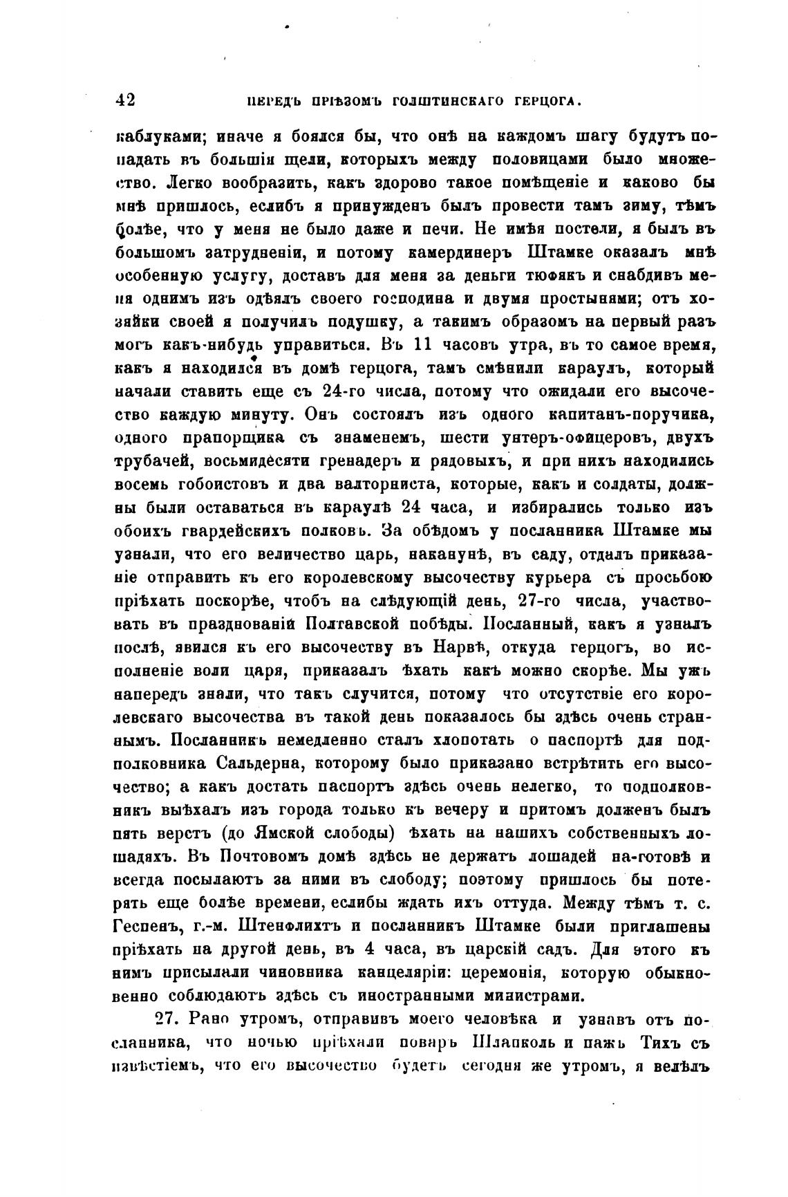 27. Рано утромъ, отправивъ моего челов%ка и уававъ отъ по-