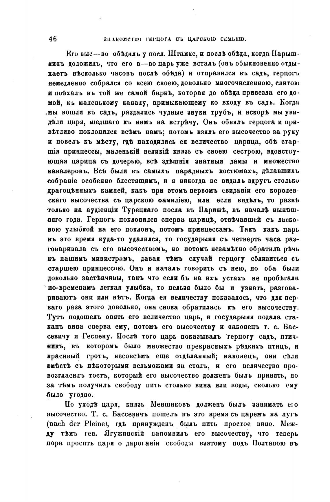 хаеть н%сводько часовъ посдђ об%да) и отправился въ садъ, герцог1.