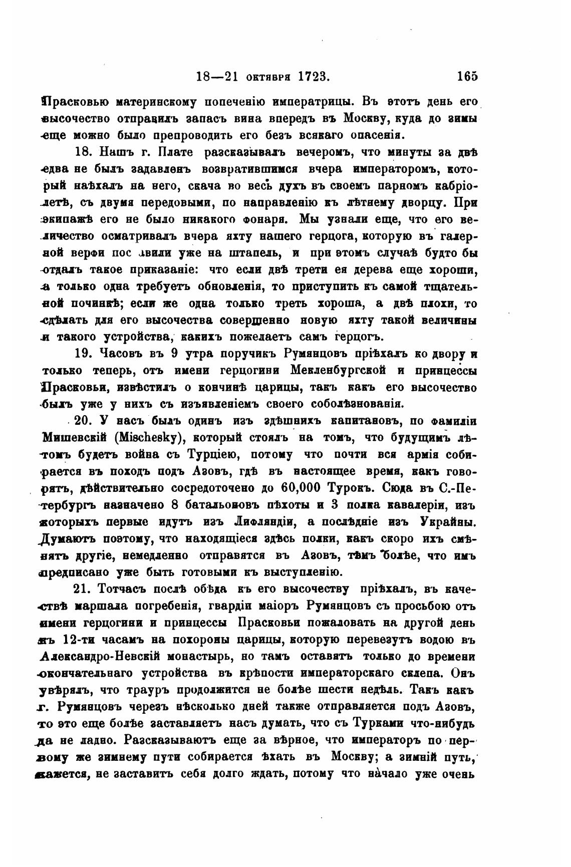 19. Часовъ въ 9 утра поручикъ Румнвцовъ прЊхагь ко двору и