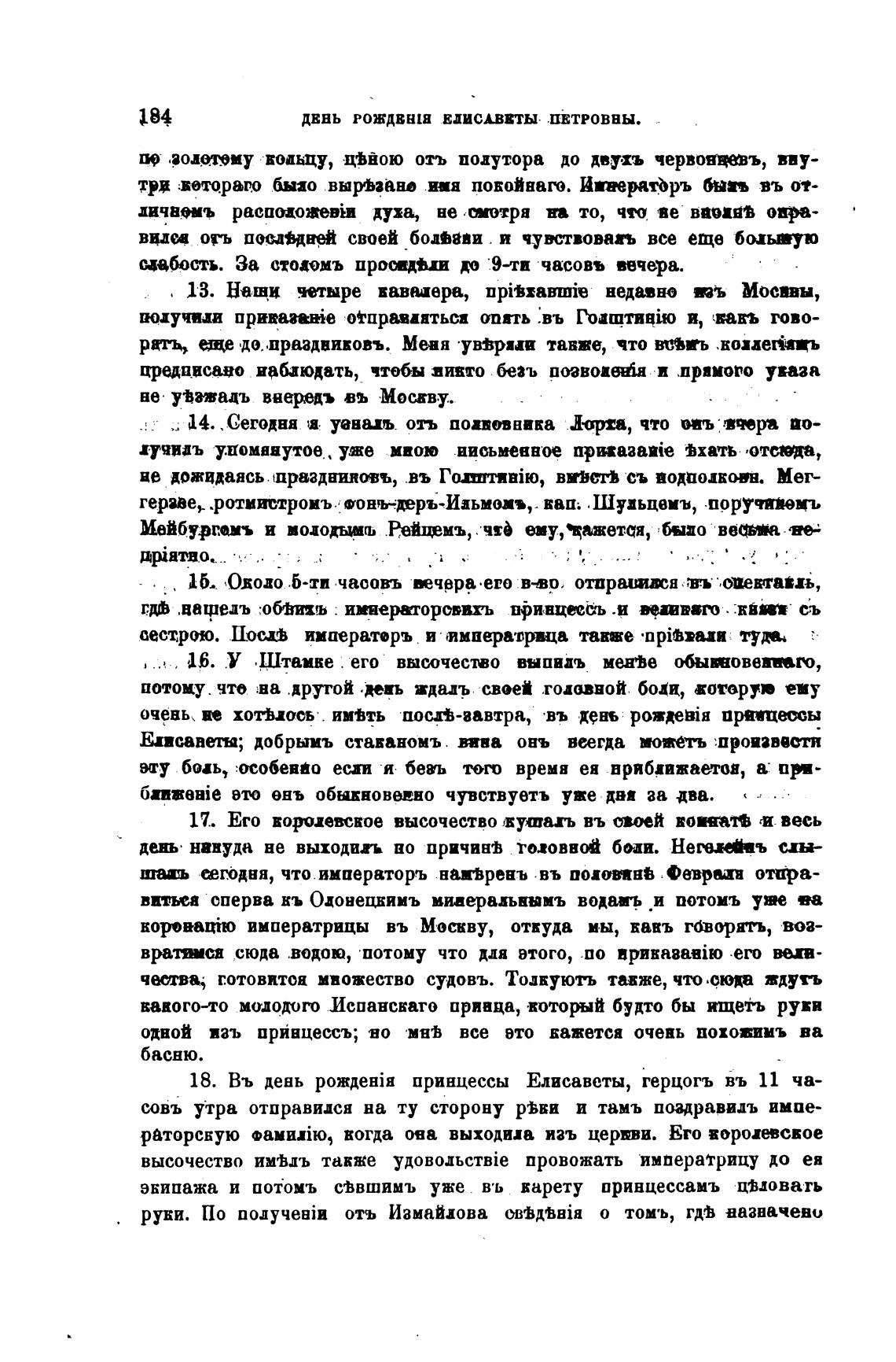 18. Въ день принцессы Елисаветы, герцогъ въ 11 ча-