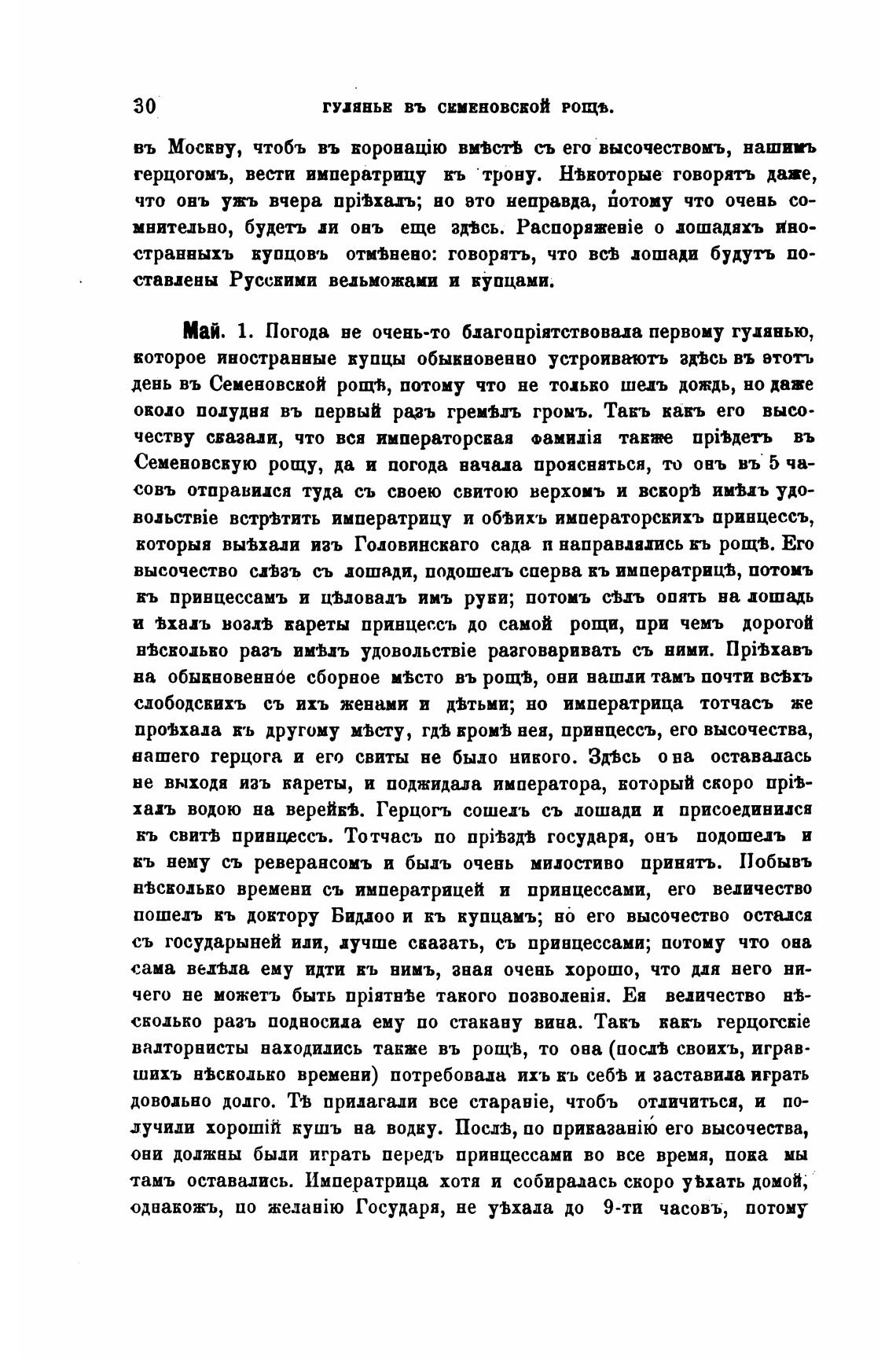 и вхалъ воздв кареты привцессъ до самой рощи, при чемъ дорогой