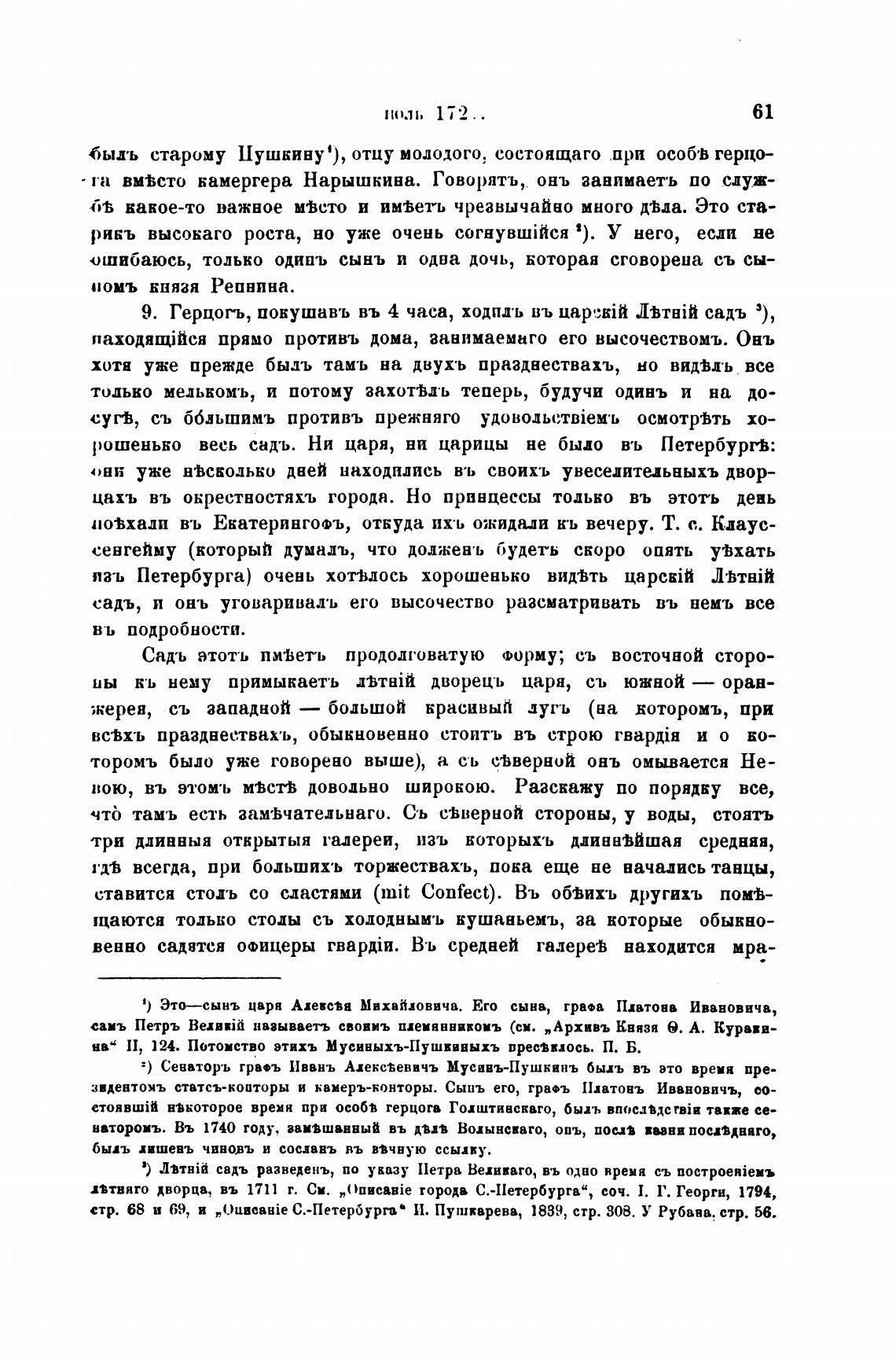 9. Герцогъ, покушавъ въ 4 часа, ходпдъ въ царскН* садъ 3),