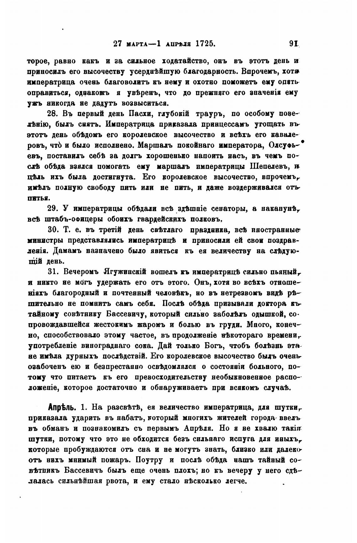 31. Вечеромъ вошедъ кь императрицв сильно пьяныИт