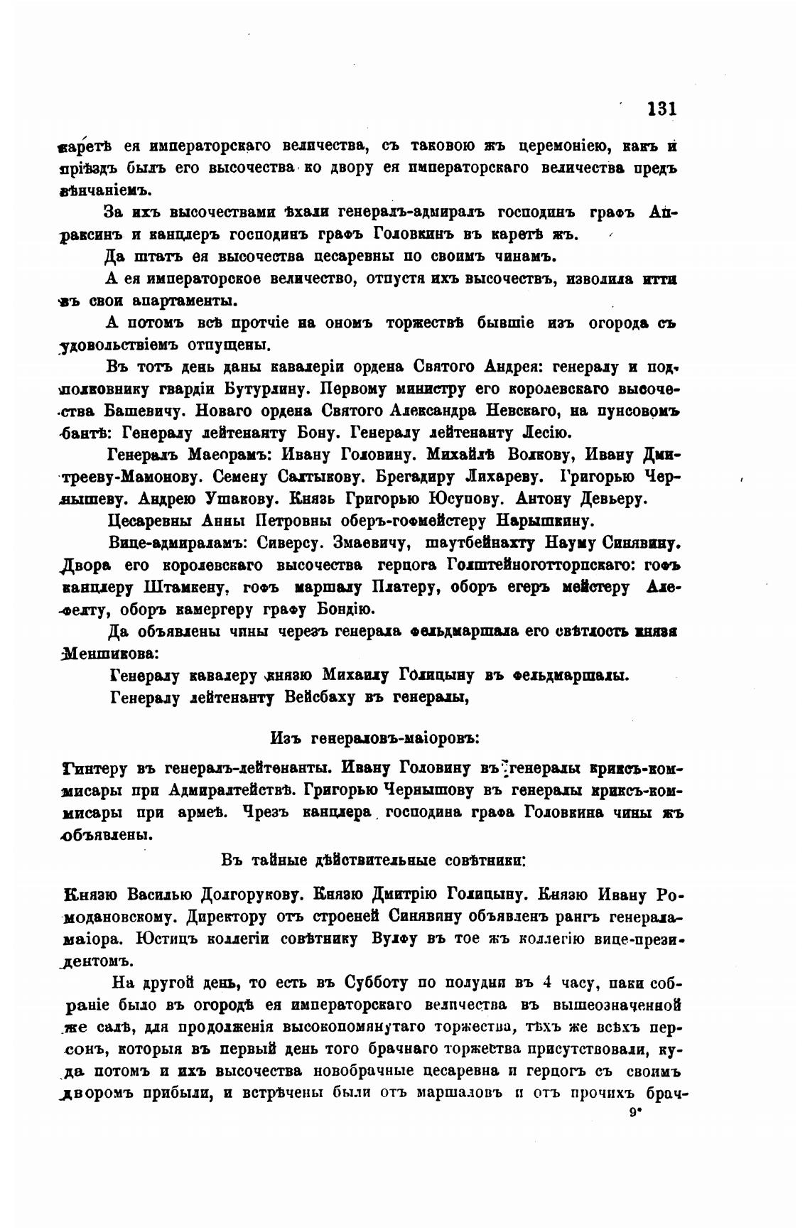 дворомъ прибыли, и встрјчены были отъ маршаловъ и отъ прочихъ брач-