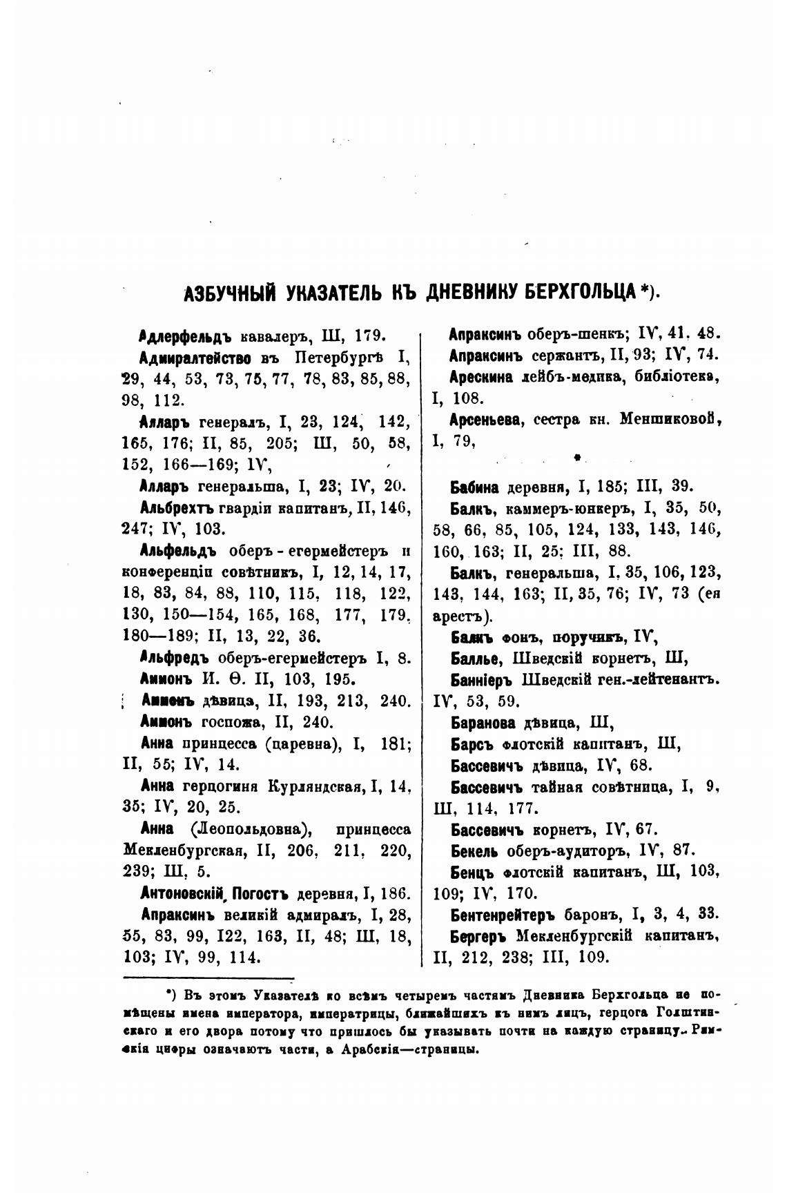 АЗБУЧНЫЯ УКАЗАТЕЛЬ КЬ ДНЕВНИКУ БЕРХГОЛЬЦА