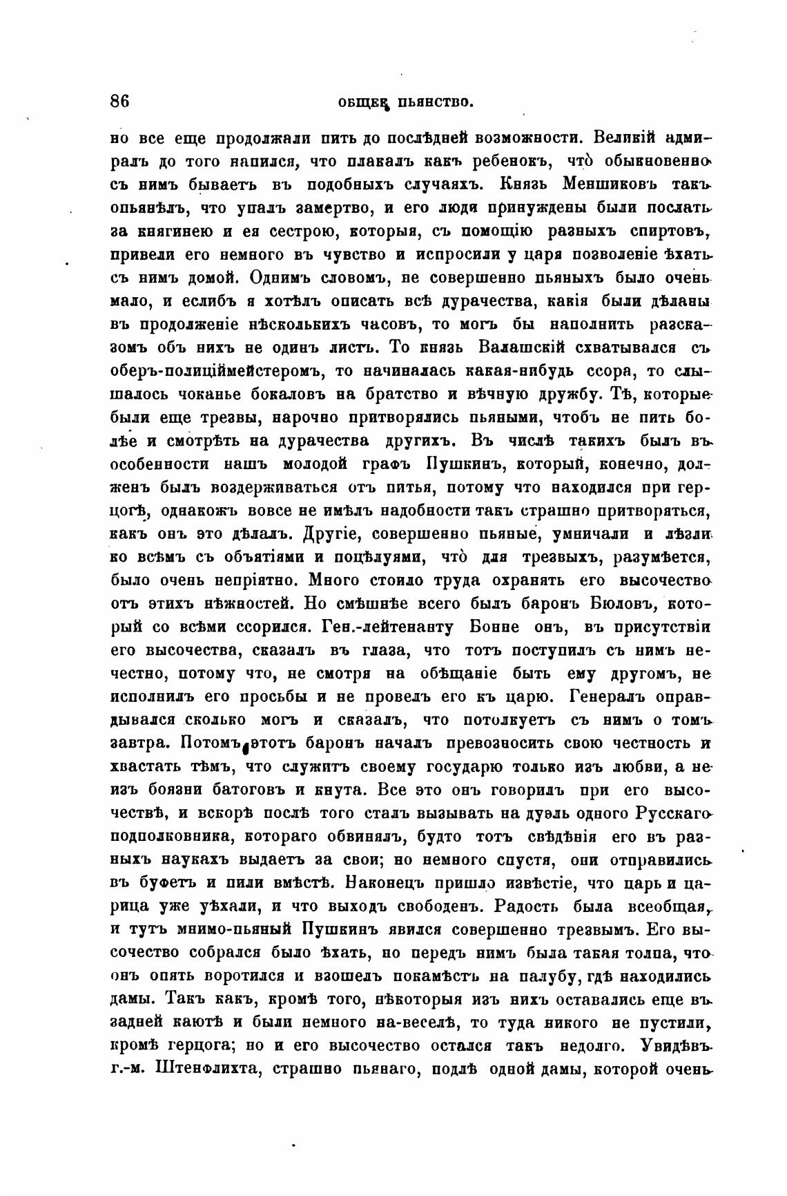 и туть мнимо-пьнный Пушкинъ явился совершенно трезвымъ. Его вы-