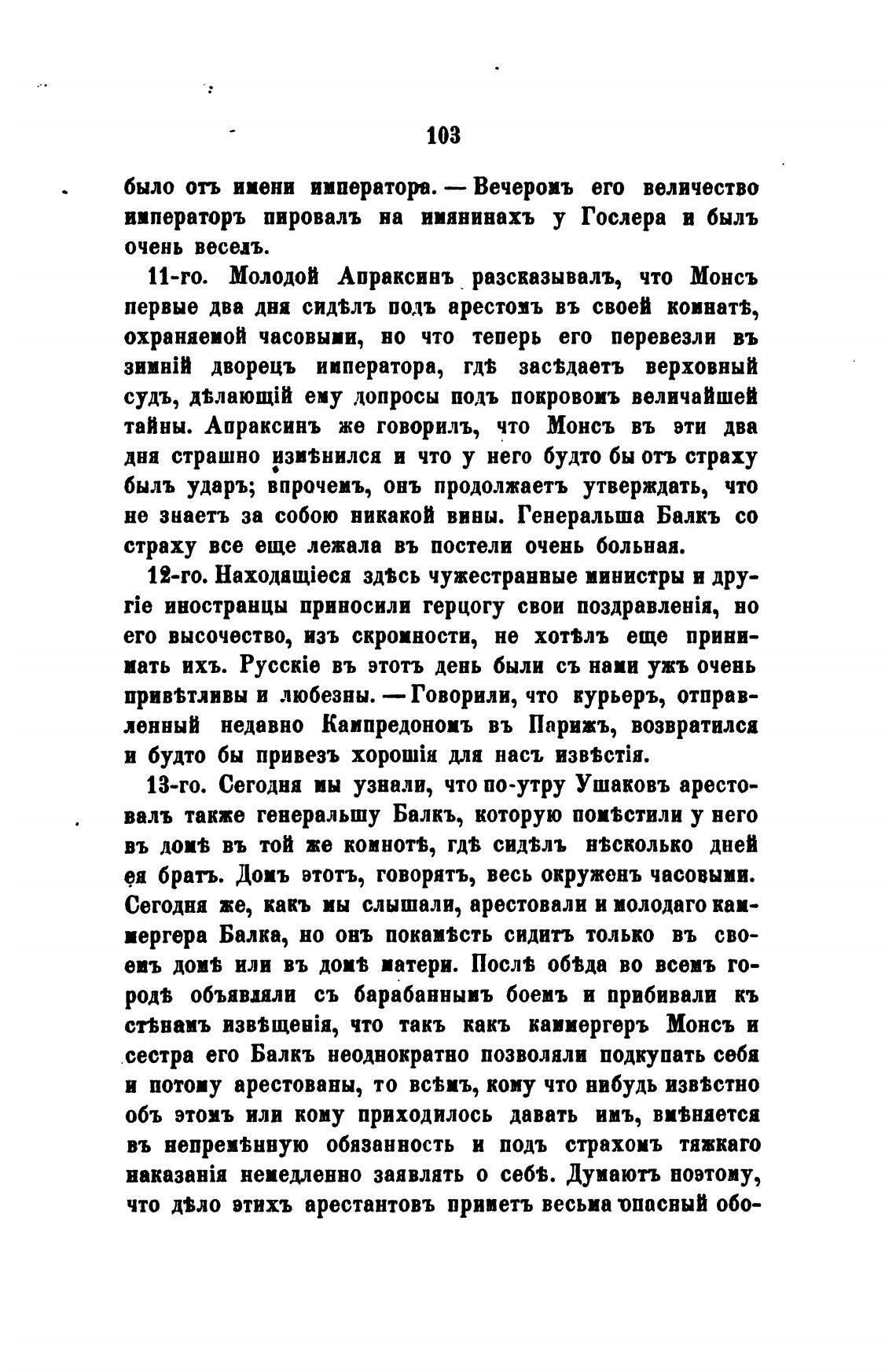 11-го. Молодой Апраксинъ разсказывалъ, что Монсъ