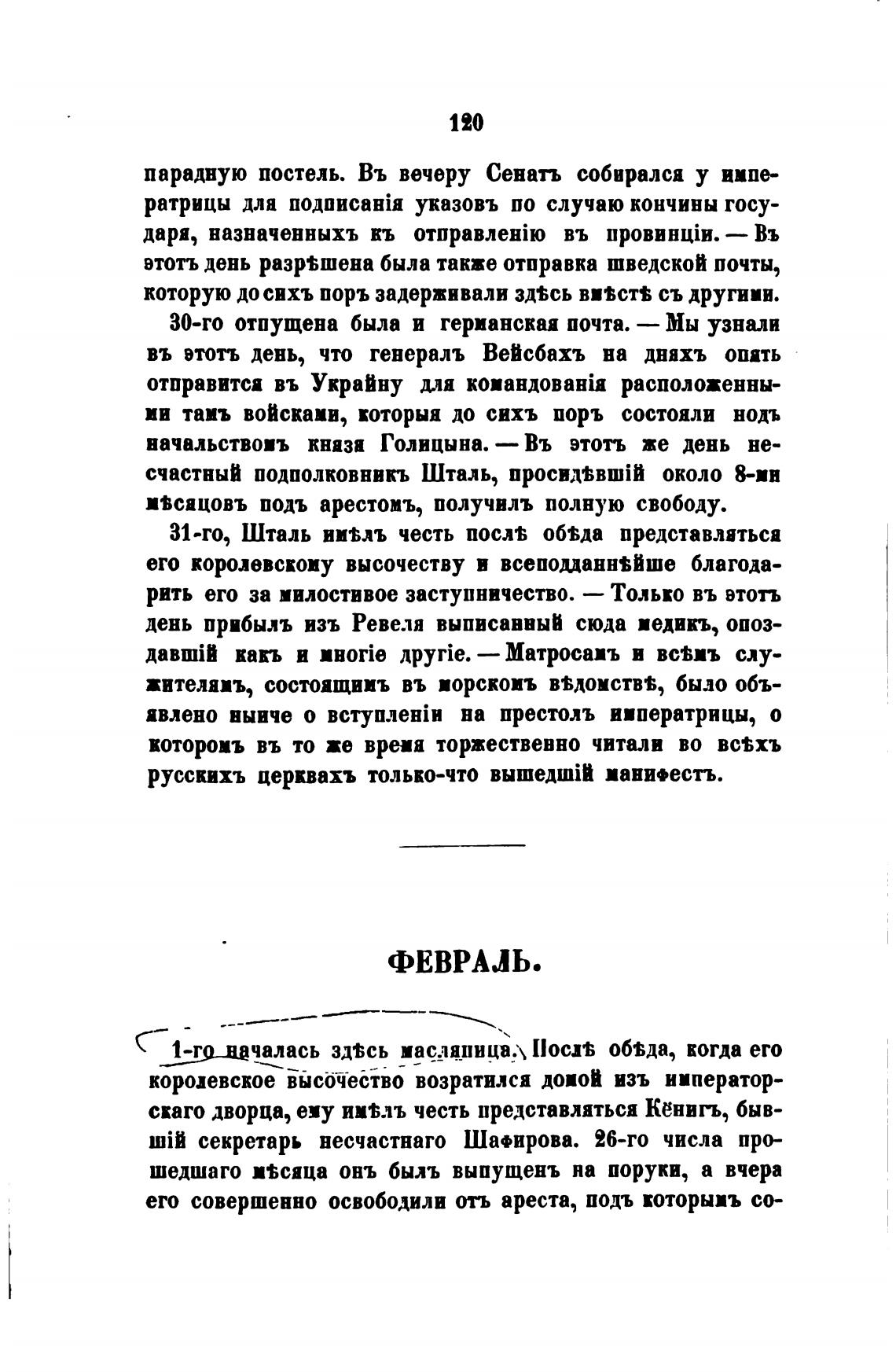 31-го, Шталь ии$лъ честь посл% обма представляться