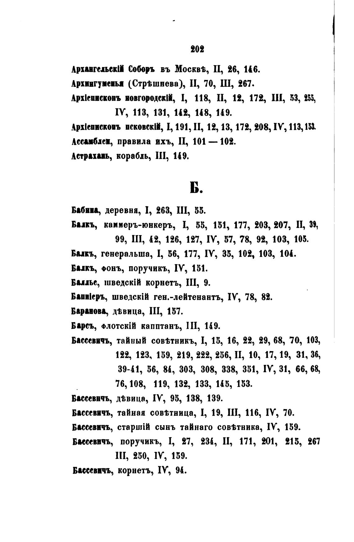 Бассевичъ, сынъ таИнаго соввтника, IV, 159.