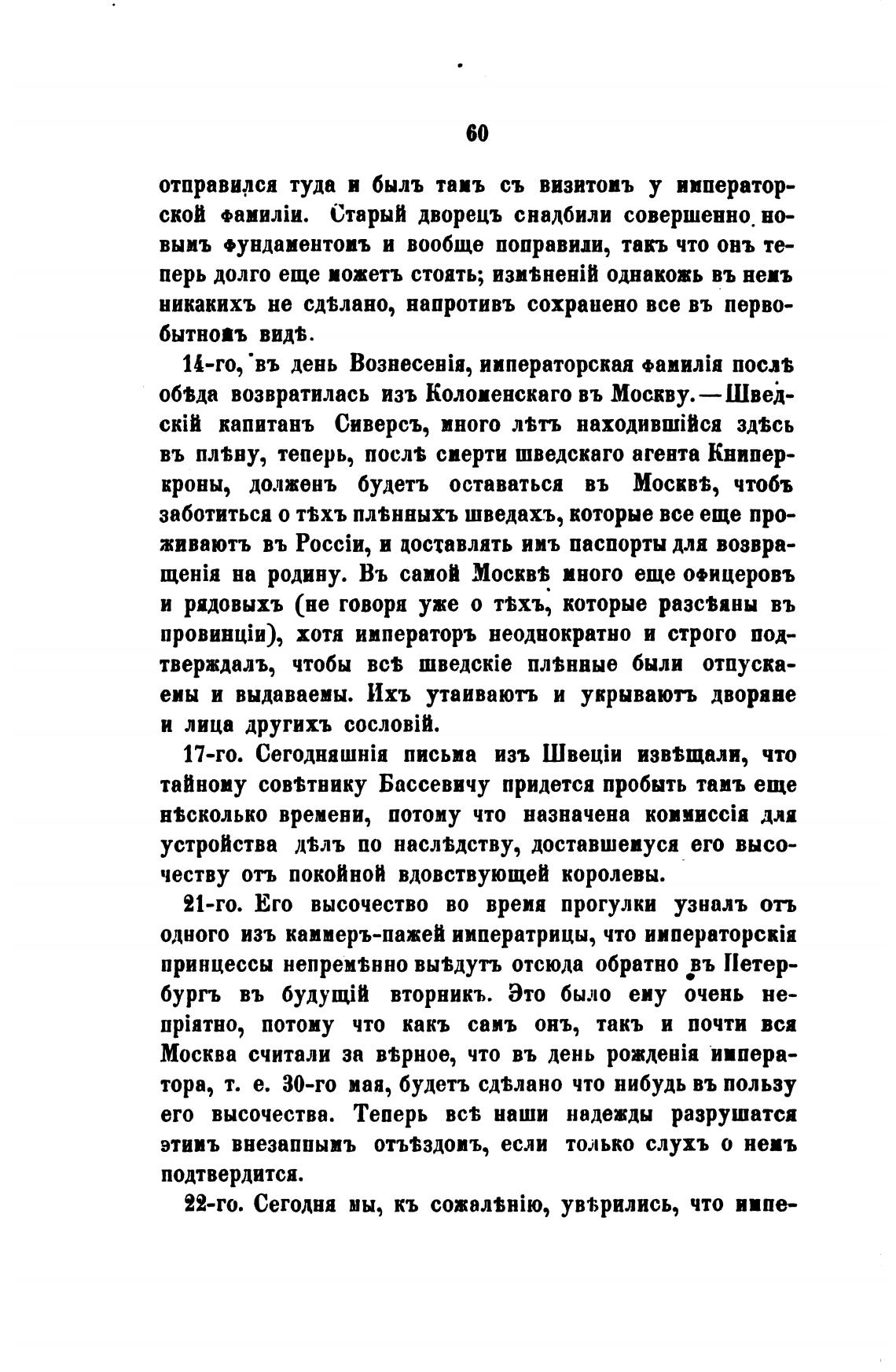 21-го. Его высочество во время прогулки узналъ отъ