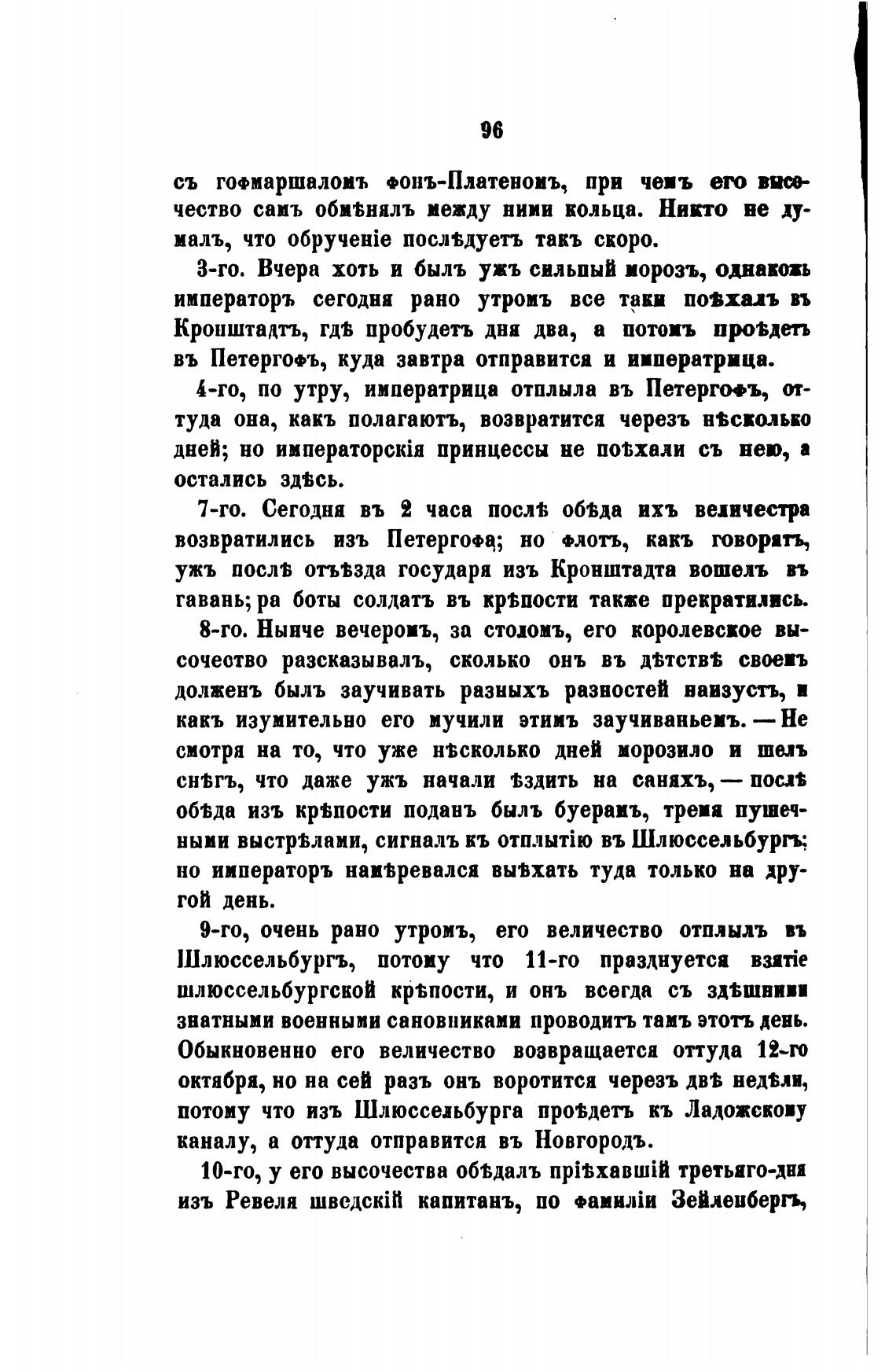 9-го, очень рано утромъ, его величество отплылъ въ