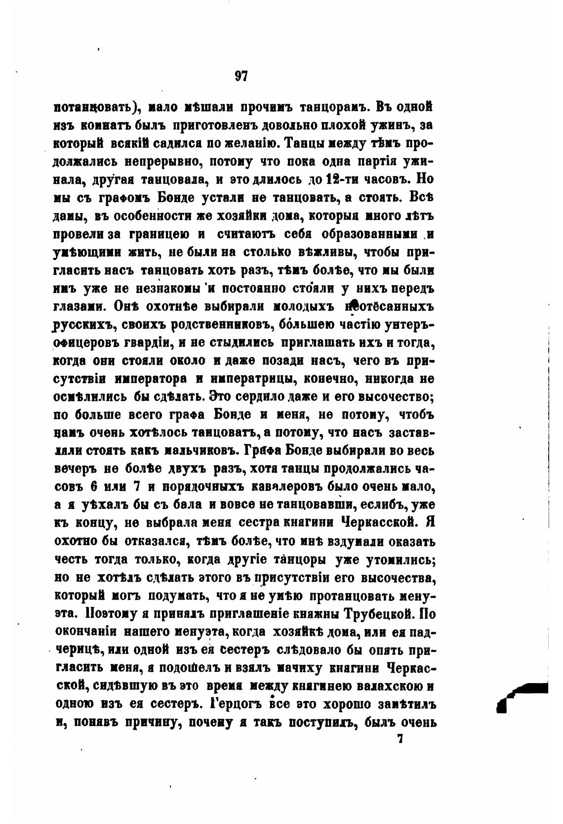 совь 6 или 7 и порядочныхъ кавалеровъ было очень мало,