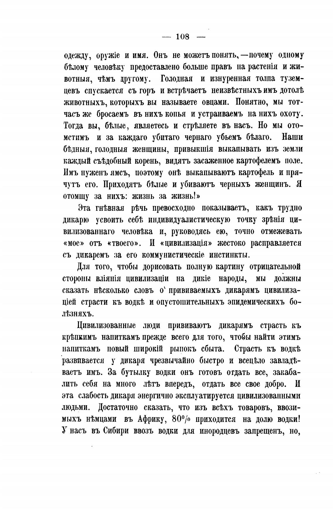 У насъ въ Сибири ввозъ водки для инородцевъ запрещенъ, но,