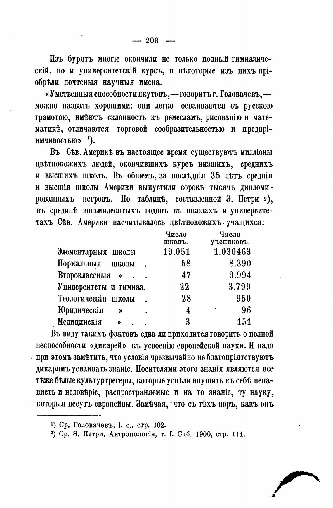 рованныхъ негровъ. По таблицћ составленной Э. Петри 2),