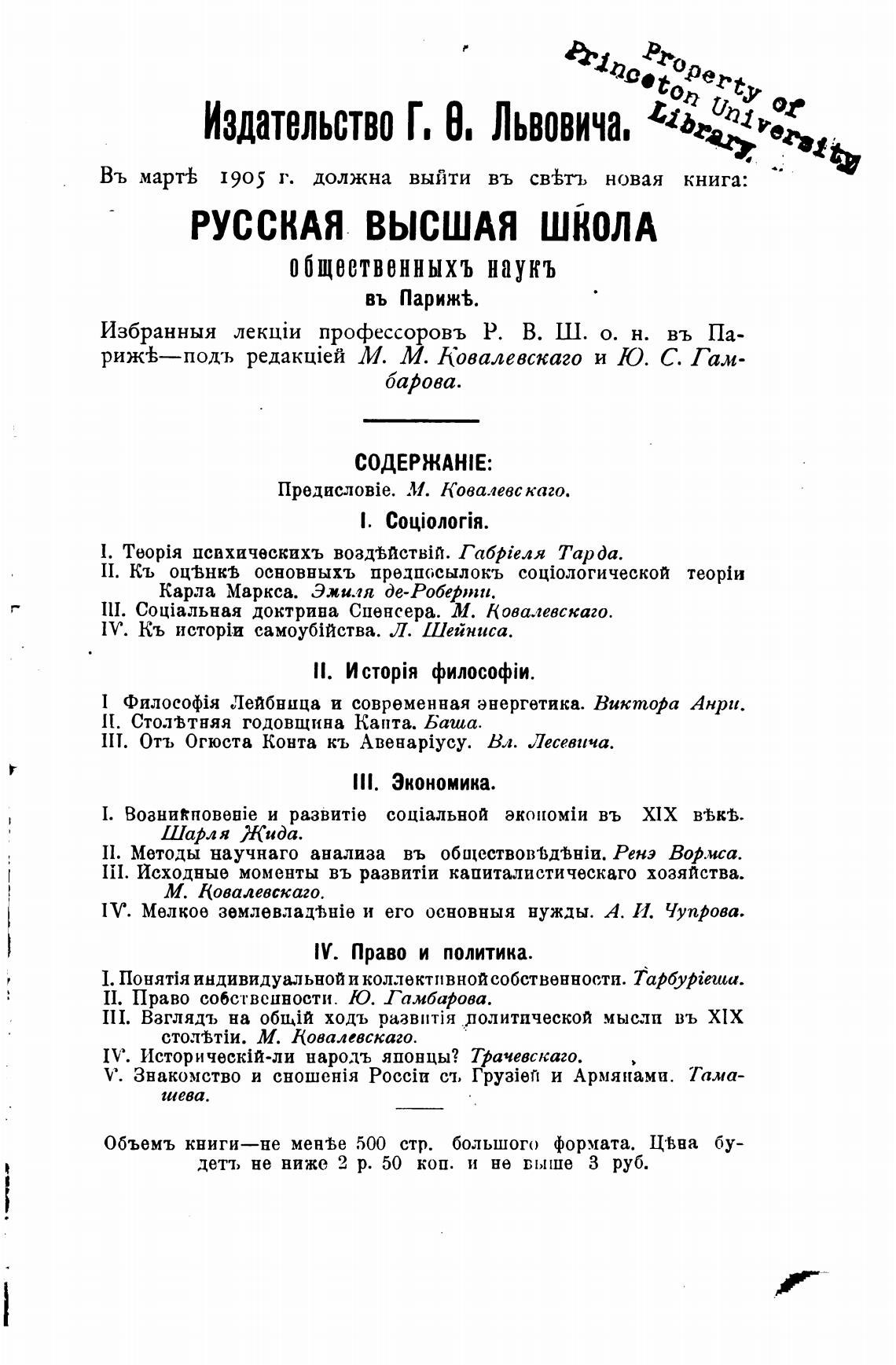 М. М. Ковалевскаго и Ю. С. Гам-
