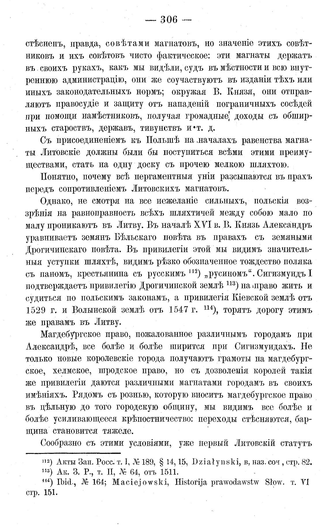 112) Акты Зап. Росс. т. 1, Х! 189, S 14, 15, Dzialynski, в, наз. соч , стр. 82.
