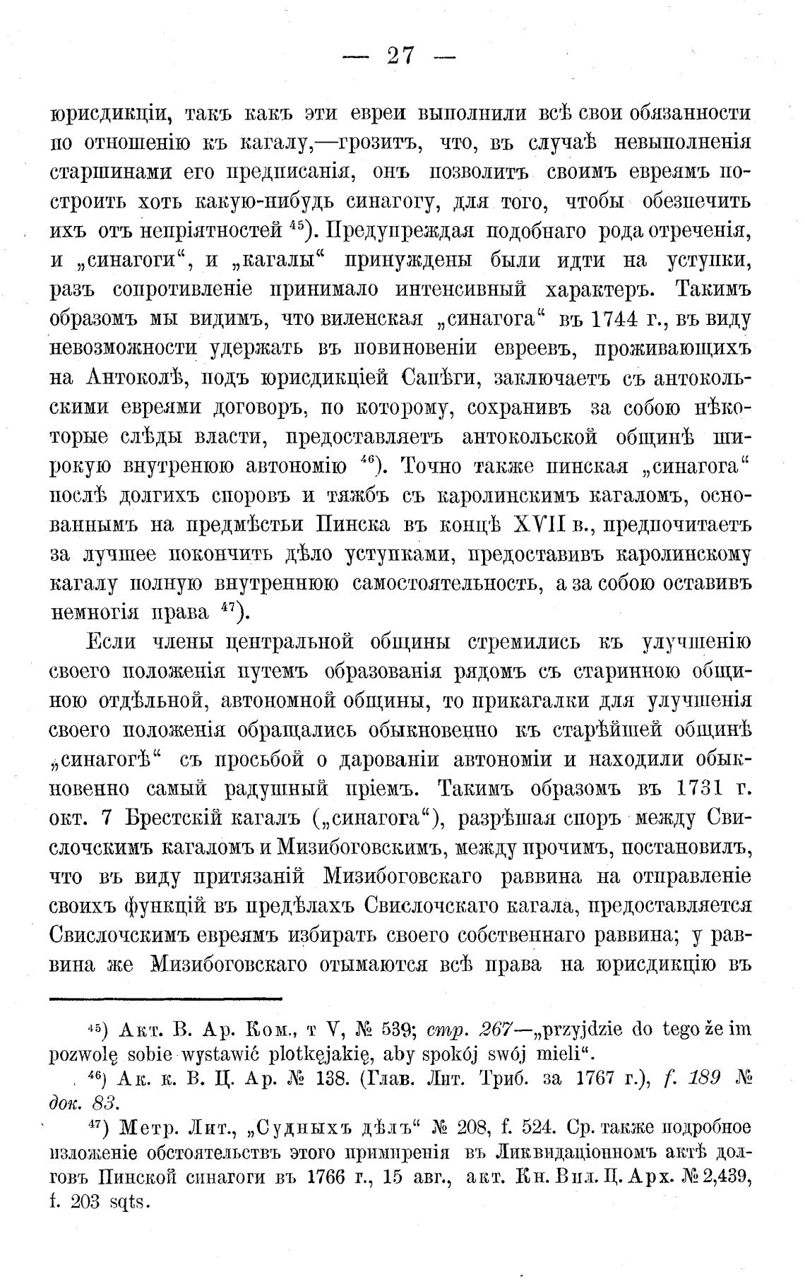 говъ Пинской синагоги въ 1766 т., 15 авг., акт. Кн. Вил. Ц. Арх. Х! 2,439,