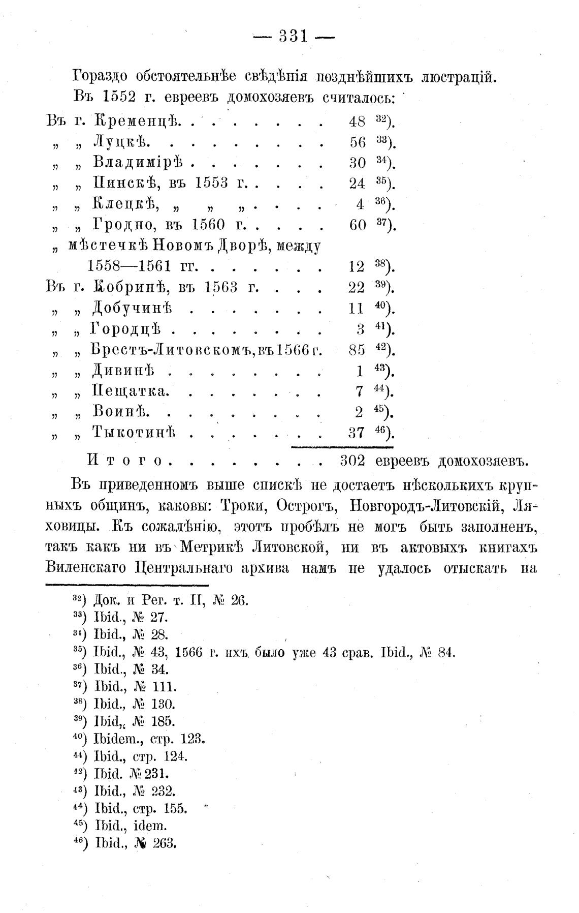 Въ 1552 г. евреевъ ДОМОХОЗЯевъ считалось: