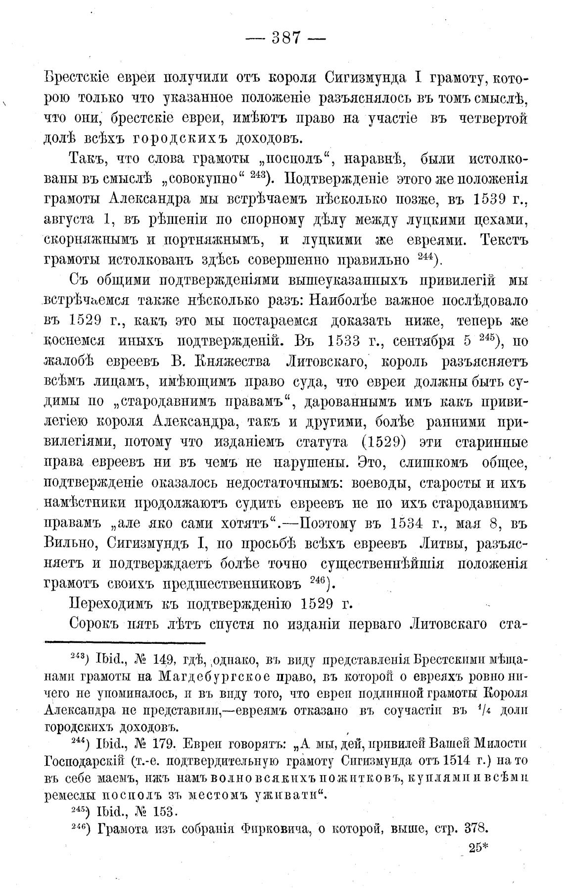 BpecTckie евреи получили отъ короля Сигизмунда I грамоту, кото-