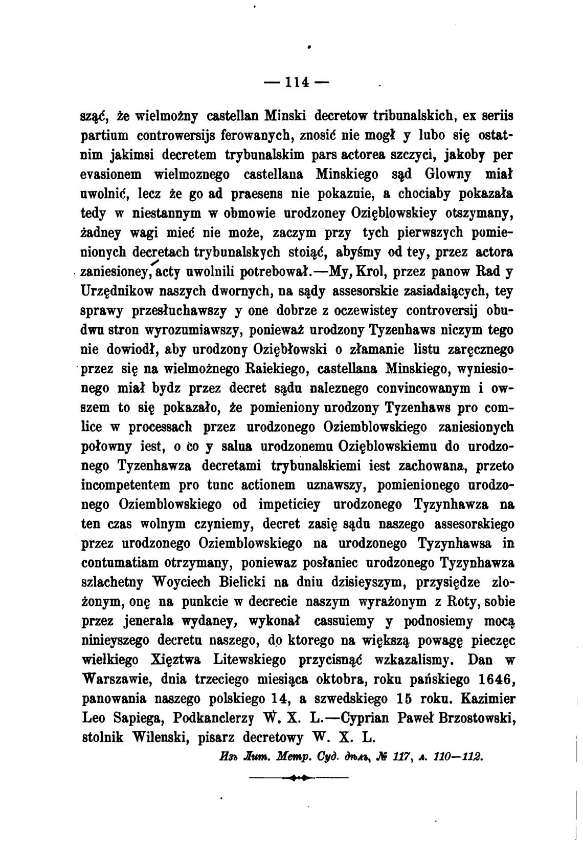 sz#, йе wielmotny castellan Minski decretow tribunalskich, ех seriis