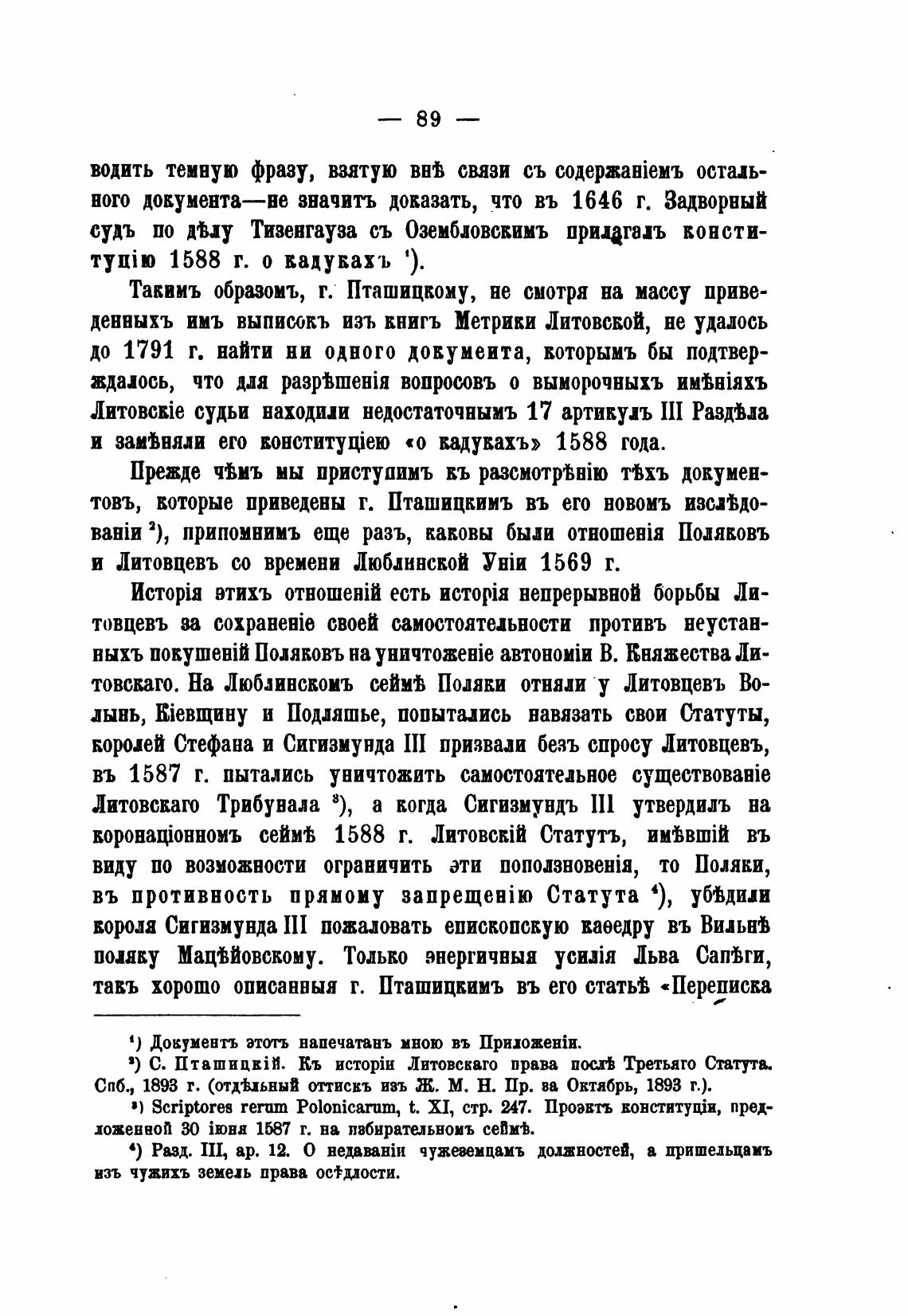 я) С. Пташицкм. Кь Литовскато права Третьято Статута.