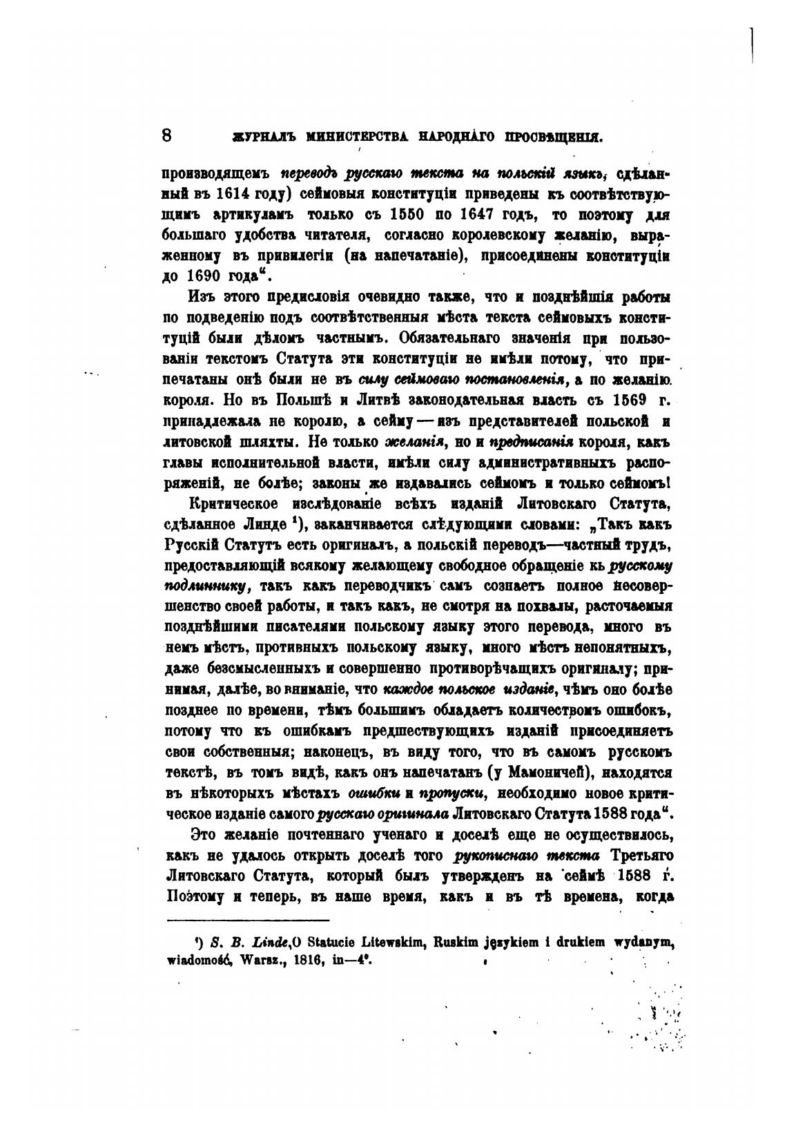 сдЬанное Линде 1), заканчивается спдующими совами: „Такъ вакъ