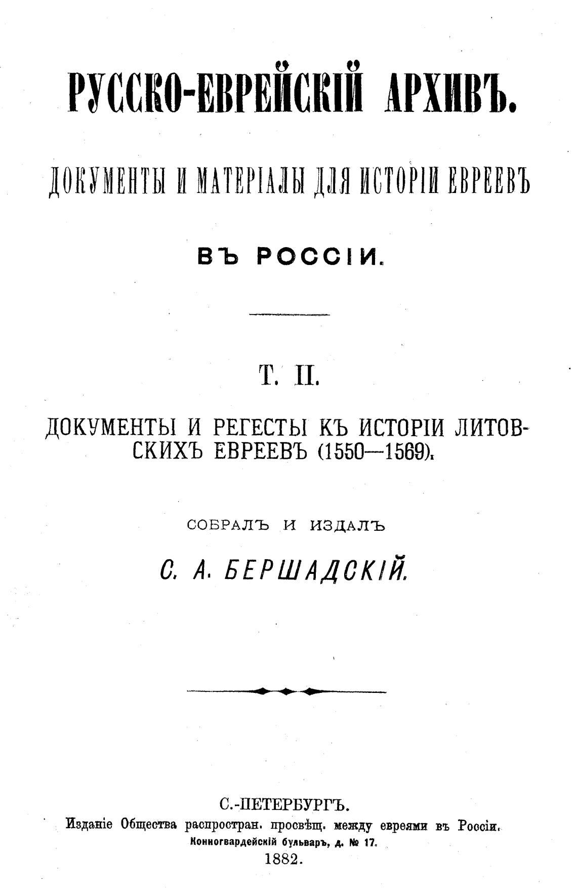 РУССКО-ЕВРЕЙСКIЙ АРХИВЪ,