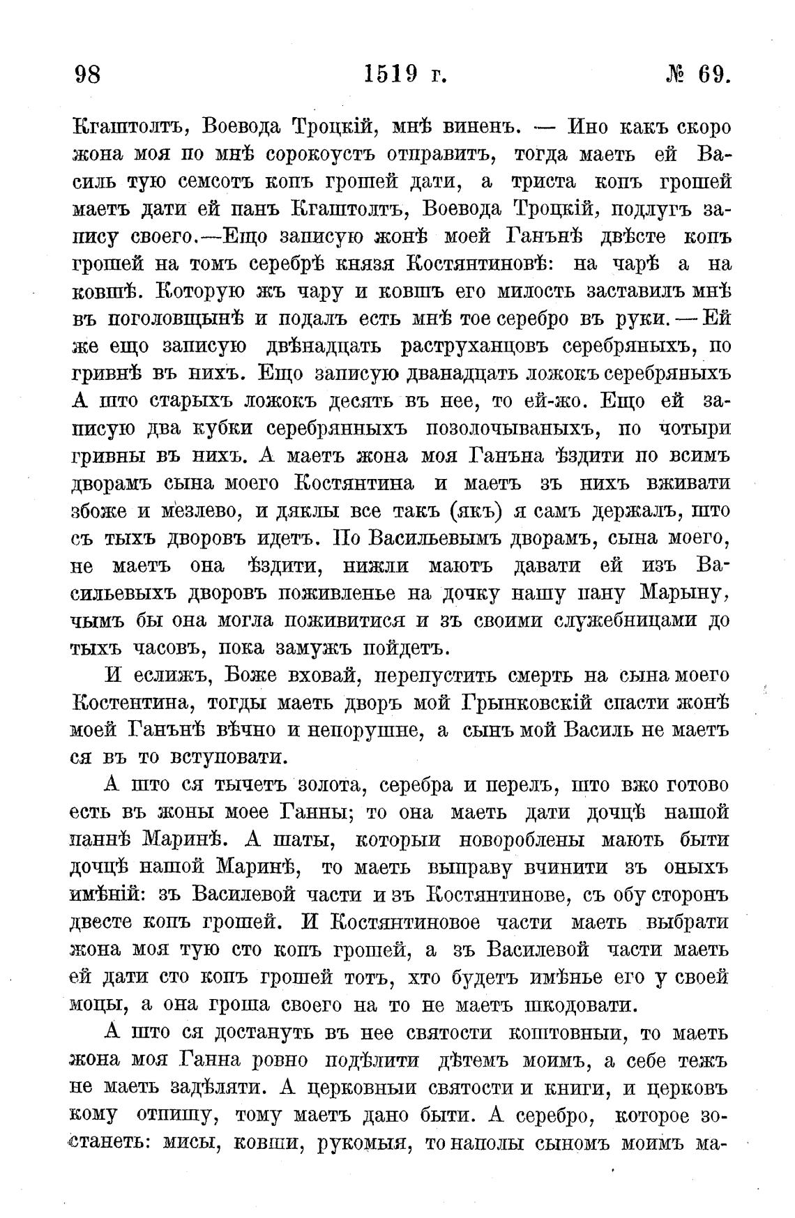 моей ГанъшЬ Мчно и непорушне, а сьшъ мой Василь не маетъ
