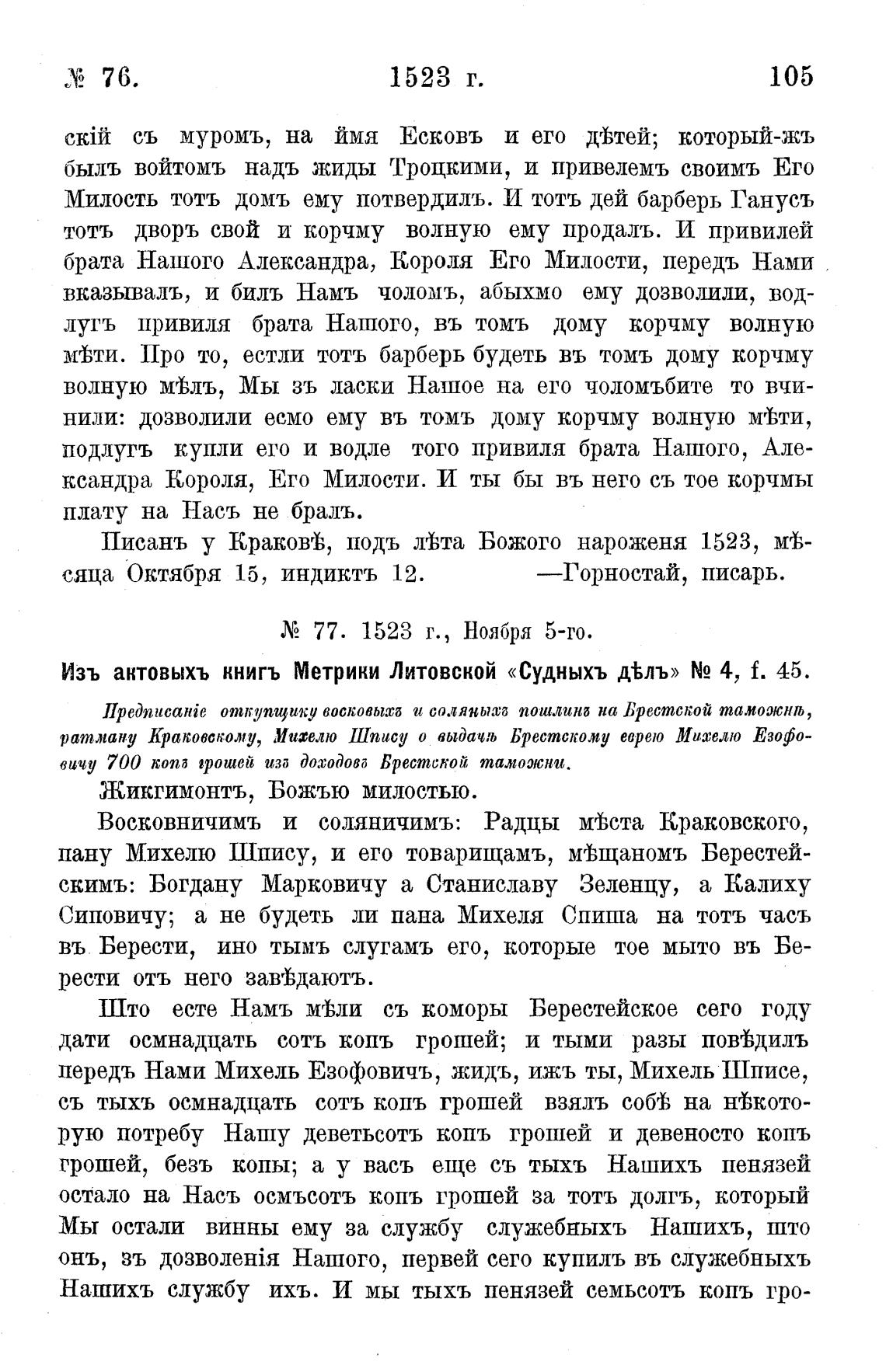 хе 77. 1523 г., ноября 5-го.