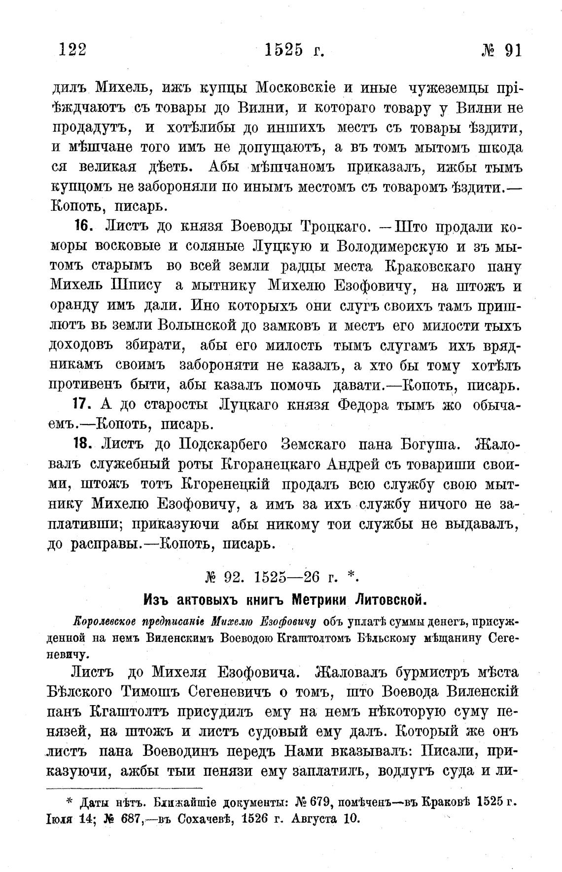 * Даты нгЬтъ. документы: 679, помгЬченъ—въ КраковеЬ 1525 г.