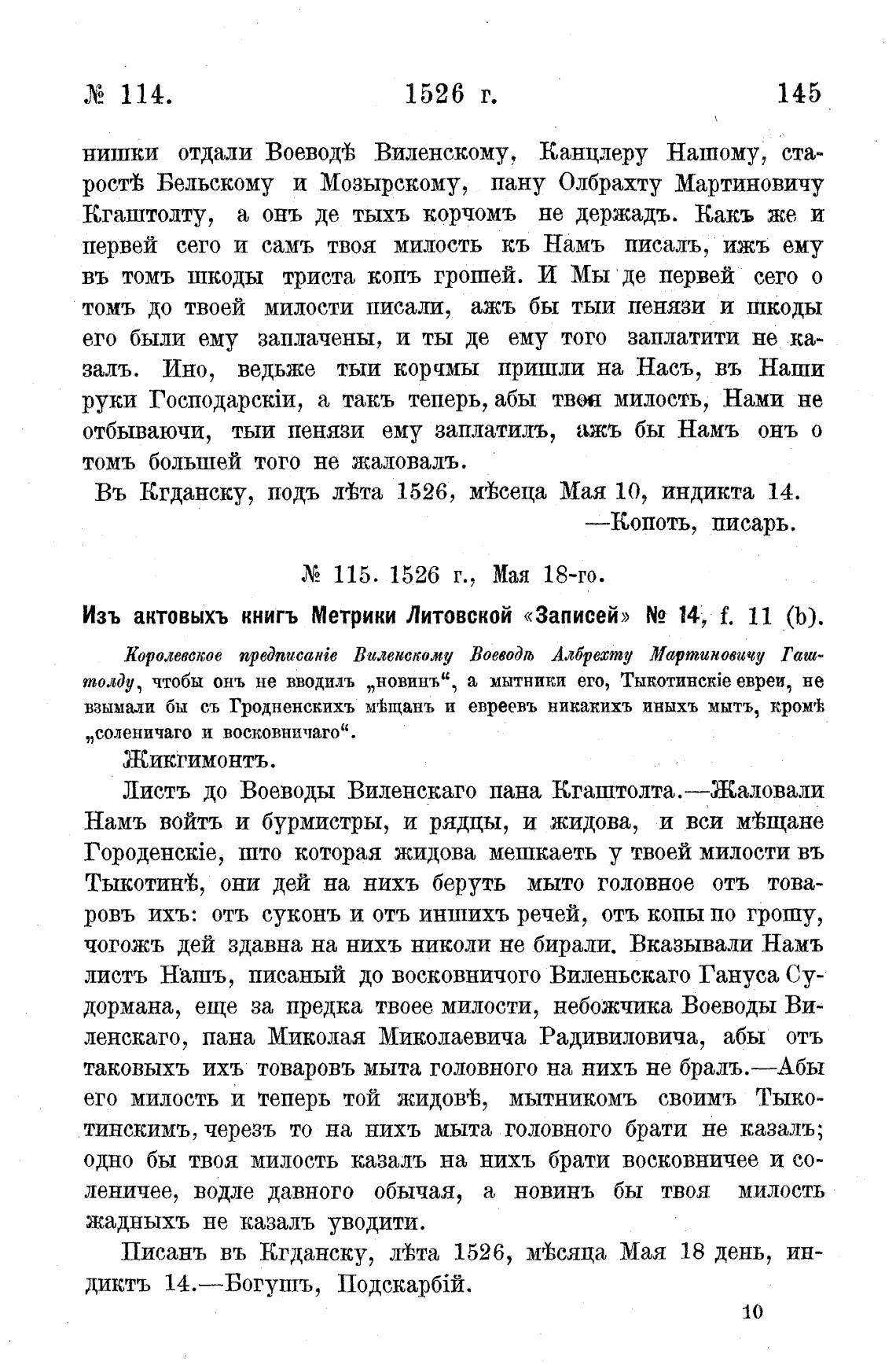 чогожъ дей здавна на нихъ николи не бирали. Вказывали Намъ