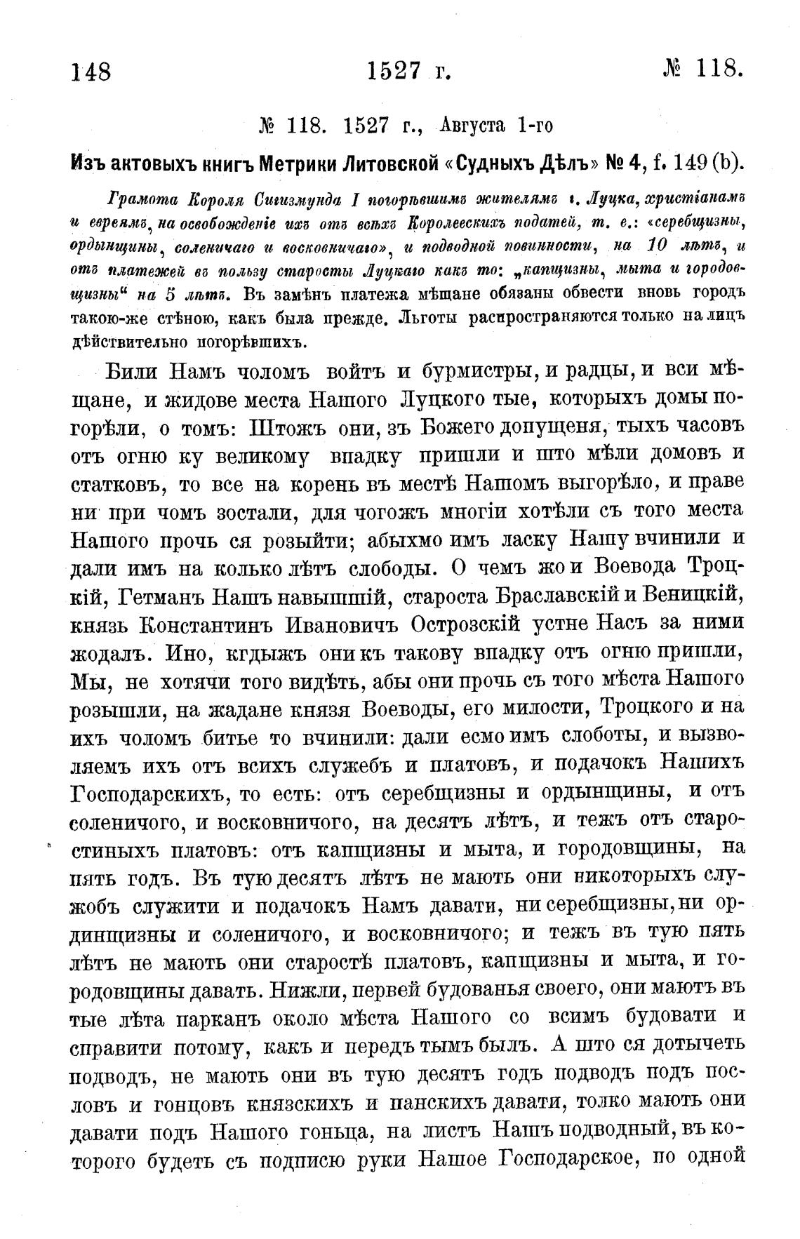 Изъ актовыхъ книгъ Метрики Литовской «Судныхъ Д%лъ» N2 4, f. 149 (Ь).