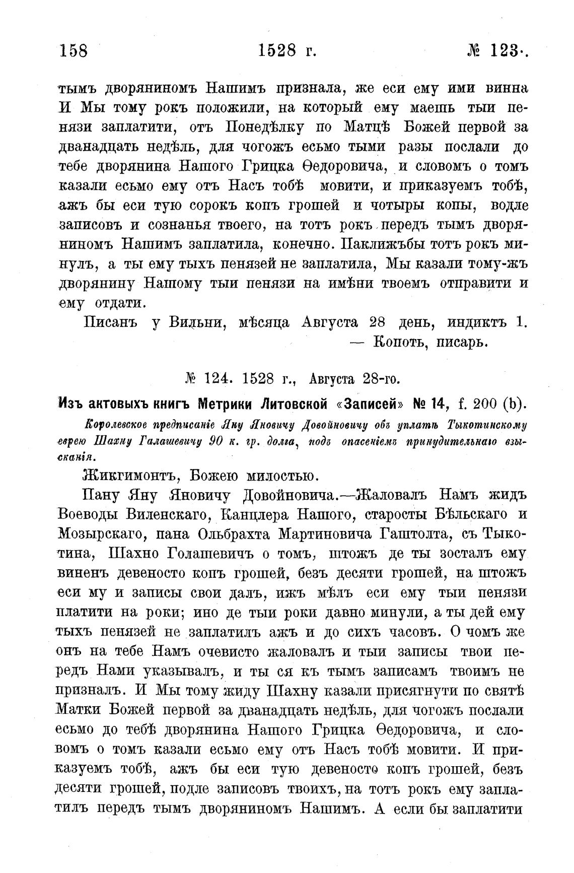 Изъ актовыхъ книгъ Метрики Литовской «Записей» Ng 14, f. 200 (Ь).