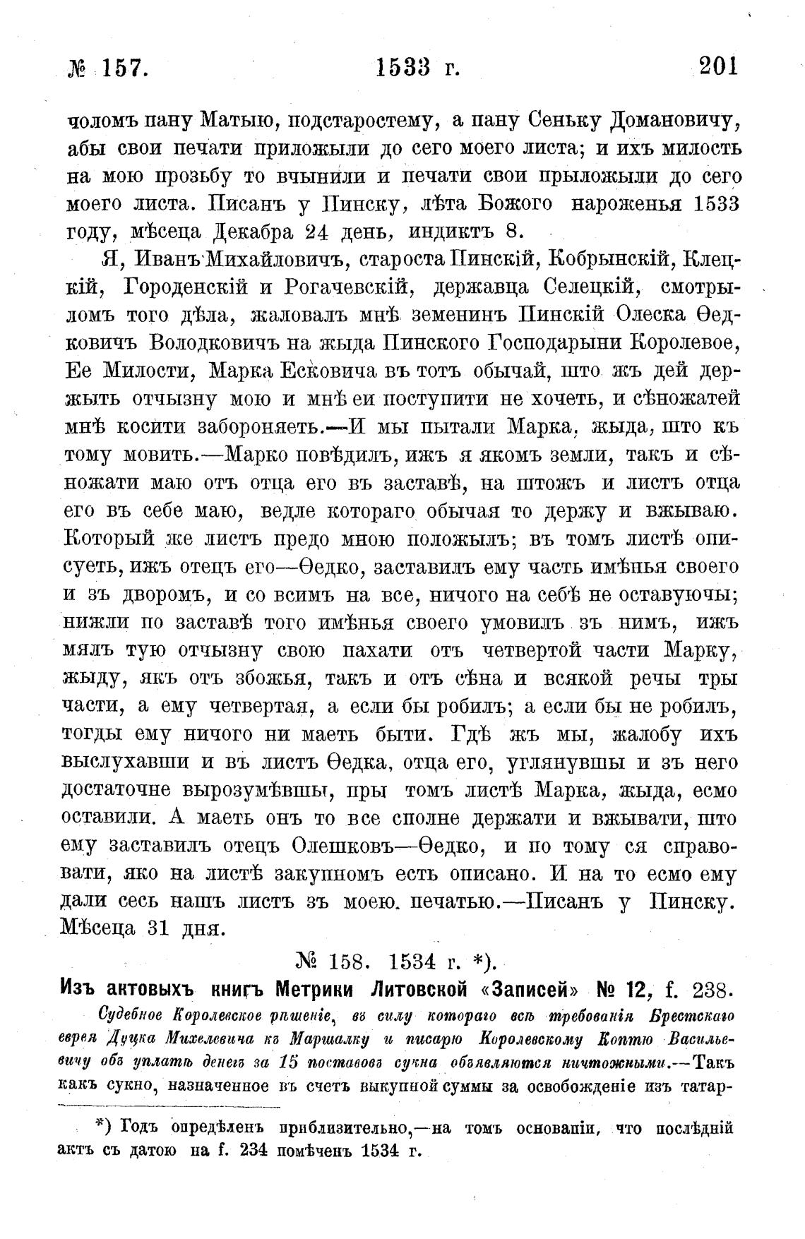 Изъ актовыхъ книгъ Метрики Литовской «Записей» N2 12, f. 238.