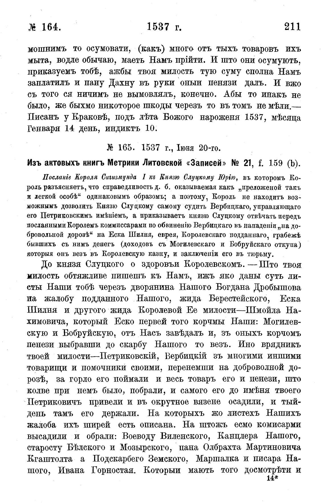Изъ актовыхъ книгъ Метрики ЛитовсКой «Записей» N2 21, f. 159 (Ь).