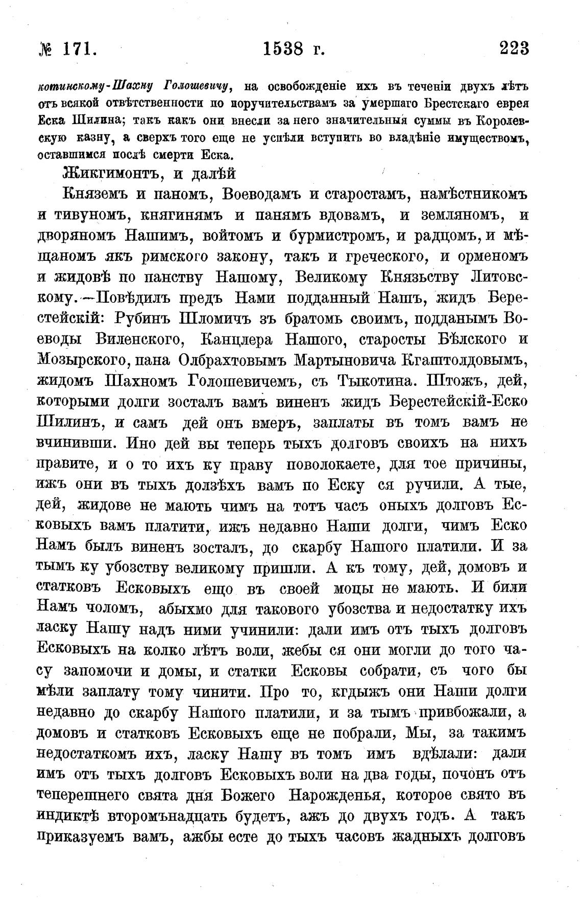 и жидовь по панству Нашому, Великому Князьству Литовс-