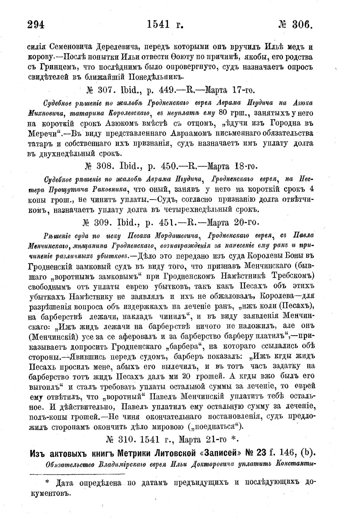 Изъ актовыхъ книгъ Метрики Литовской «Записей» N2 23 f. 146, (Ь).