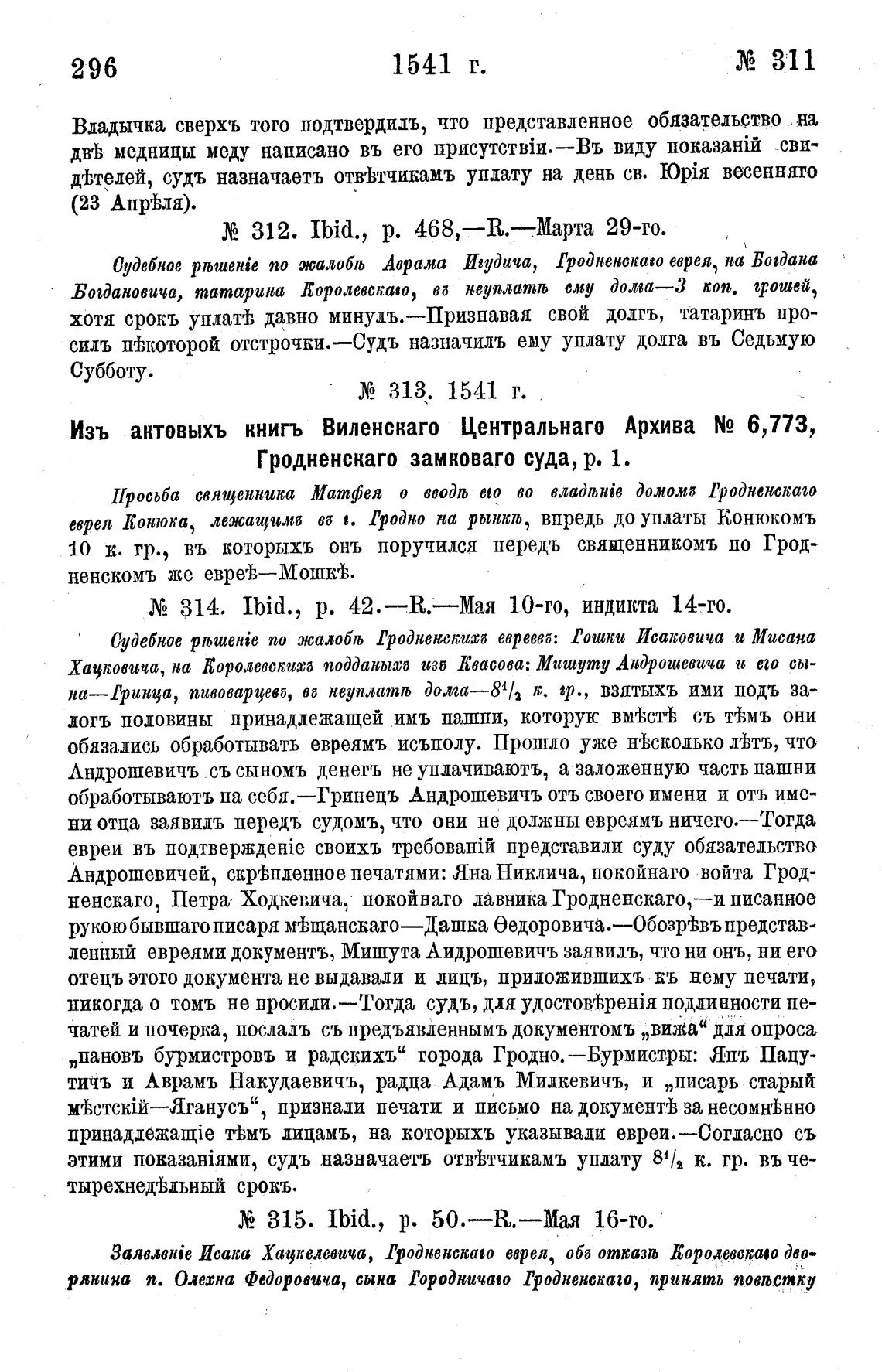 Изъ актовыхъ книгъ Виленскаго Центральнаго Архива N2 6,773,